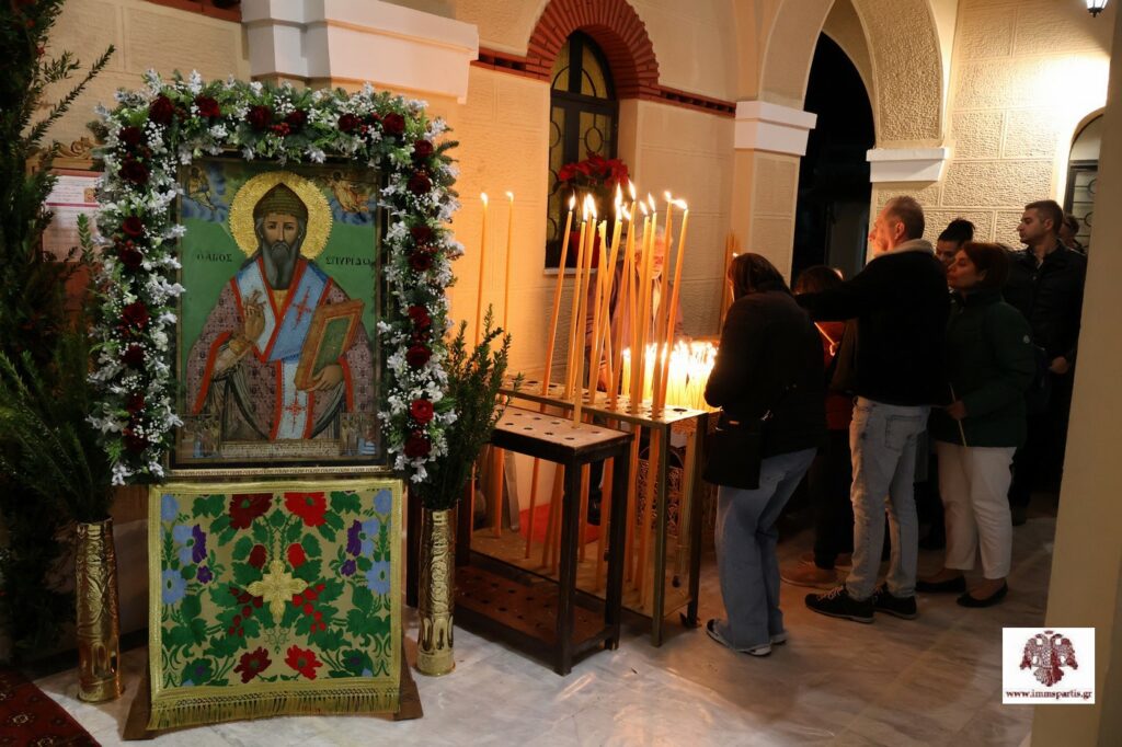 Τον πολιούχο του Άγιο Σπυρίδωνα εόρτασε με τη δέουσα εκκλησιαστική μεγαλοπρέπεια και λαμπρότητα ο Μυστράς, το διήμερο 11-12/12. Ειδικότερα, η πανήγυρη ξεκίνησε το απόγευμα της παραμονής της εορτής, Πέμπτη (11/12), στον φερώνυμο ιερό ναό, με την τέλεση του πανηγυρικού αρχιερατικού εσπερινού μετ’ αρτοκλασίας χοροστατούντος του θεοφιλεστάτου Επισκόπου Λακεδαιμονίας κ. Θεοφίλου.