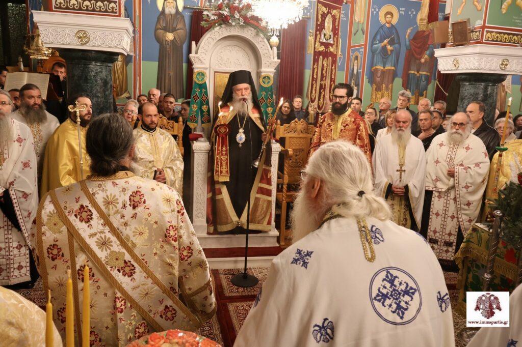 Το απόγευμα της παραμονής της εορτής, Πέμπτη (11/12), τελέσθηκε ο Μέγας πανηγυρικός Αρχιερατικός Εσπερινός μετ’ αρτοκλασίας, χοροστατούντος του σεβασμιωτάτου Μητροπολίτη κ. Ευσταθίου, με τη συμμετοχή πλειάδας κληρικών από την ευρύτερη περιοχή.