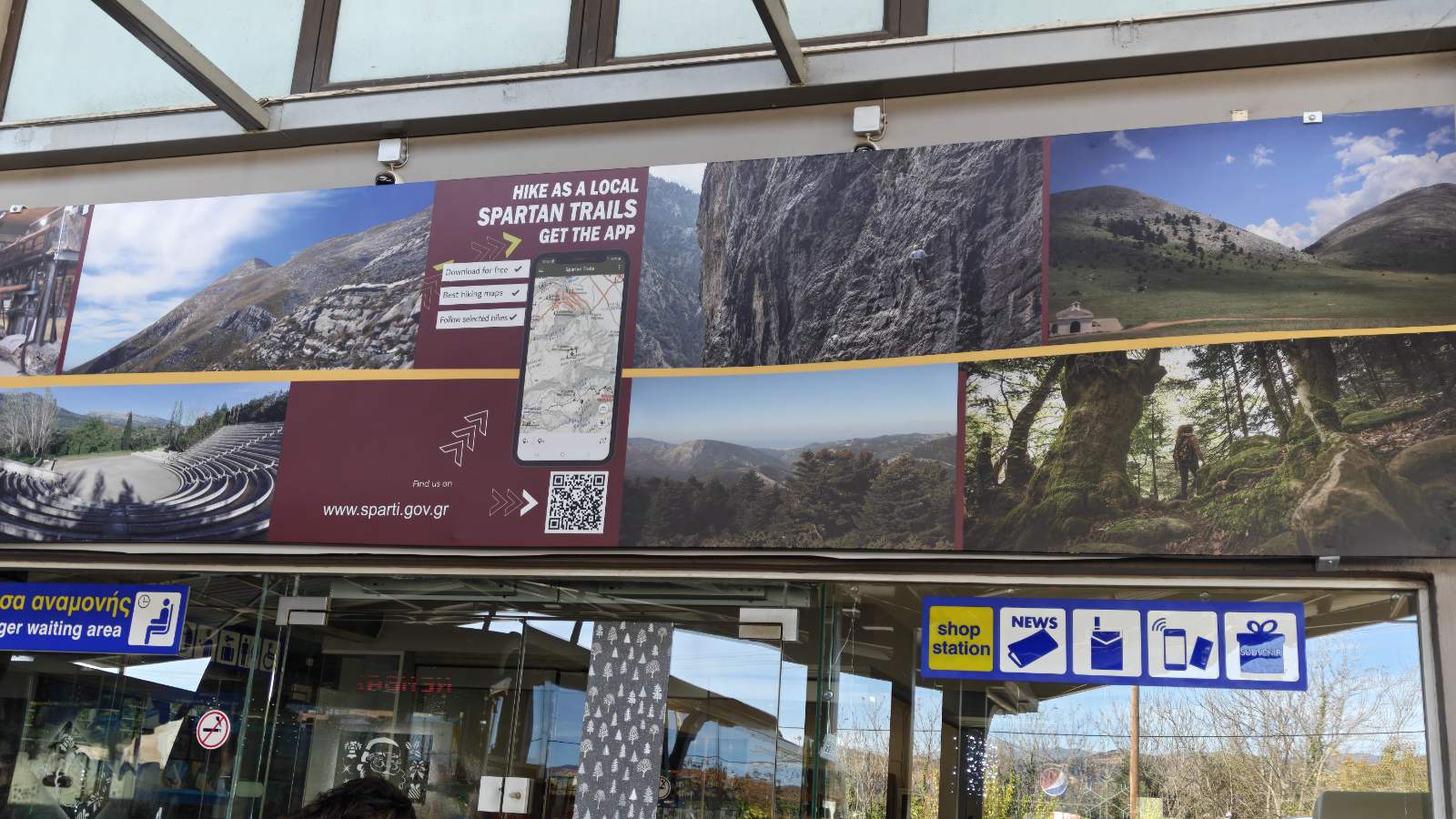 Παράλληλα, η σύγχρονη τουριστική προβολή συνδυάζεται με την ψηφιακή ενημέρωση, καθώς στη μαρκίζα έχουν ενσωματωθεί δύο barcodes. Μέσω αυτών, οι επισκέπτες μπορούν άμεσα να περιηγηθούν στην ιστοσελίδα Real Sparta, το επίσημο τουριστικό portal του Δήμου Σπάρτης, αλλά και να κατεβάσουν την εφαρμογή Spartan Trails, η οποία προσφέρει αναλυτικές πληροφορίες για μοναδικές πεζοπορικές διαδρομές στον Ταΰγετο και τον Πάρνωνα.