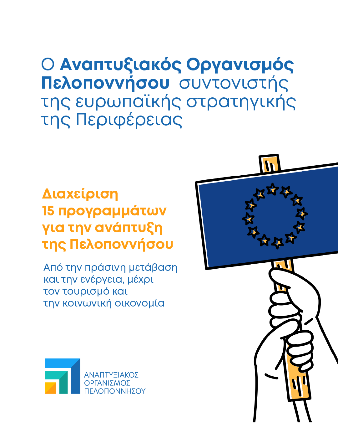 Κομβικό ρόλο στη διαμόρφωση και υλοποίηση της ευρωπαϊκής αναπτυξιακής στρατηγικής της Περιφέρειας Πελοποννήσου αναλαμβάνει πλέον ο Αναπτυξιακός Οργανισμός Πελοποννήσου, ο οποίος καθιερώνεται ως βασικός διαχειριστής και συντονιστής σύνθετων ευρωπαϊκών προγραμμάτων υψηλής προστιθέμενης αξίας.