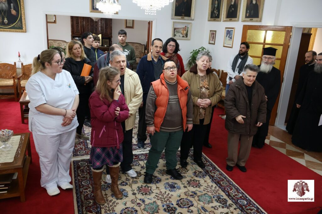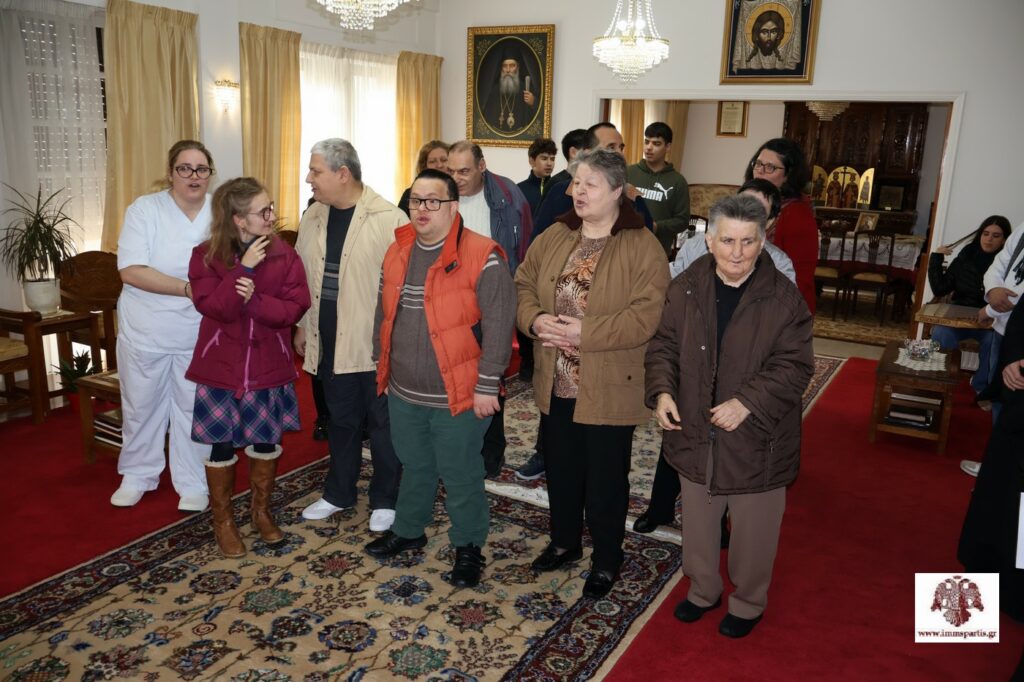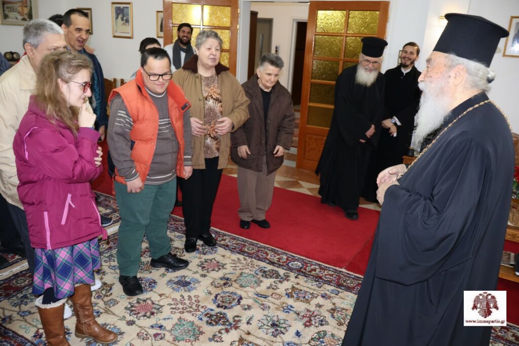 Ακολούθως, στο Επισκοπείο βρέθηκαν τρόφιμοι του Ιδρύματος Περιθάλψεως Χρονίως Πασχόντων, Ηλικιωμένων και ΑΜΕΑ «Ο Άγιος Παντελεήμων», με τη συνοδεία του διοικητή, αιδεσιμολογιώτατου πρωτοπρεσβύτερου π. Γεωργίου Κοντού, του μέλους του ΔΣ, κ. Ιωάννη Παπαναγνώστου, και εργαζομένων. Οι τρόφιμοι έψαλλαν τα κάλαντα στον σεπτό Ποιμενάρχη, ο οποίος εξέφρασε τη χαρά του για την παρουσία τους. Επίσης, ευχήθηκε στη διεύθυνση, τα μέλη του ΔΣ, το προσωπικό και τους τροφίμους του Ασύλου Ανιάτων, «υγεία, αγάπη, χαρά και ψυχική γαλήνη».