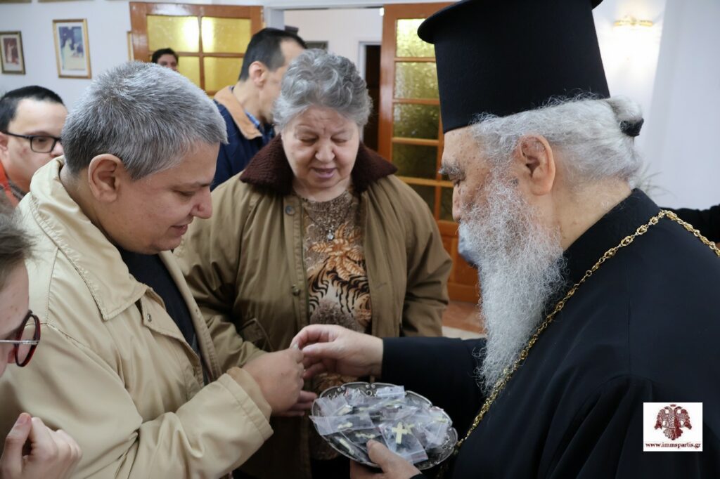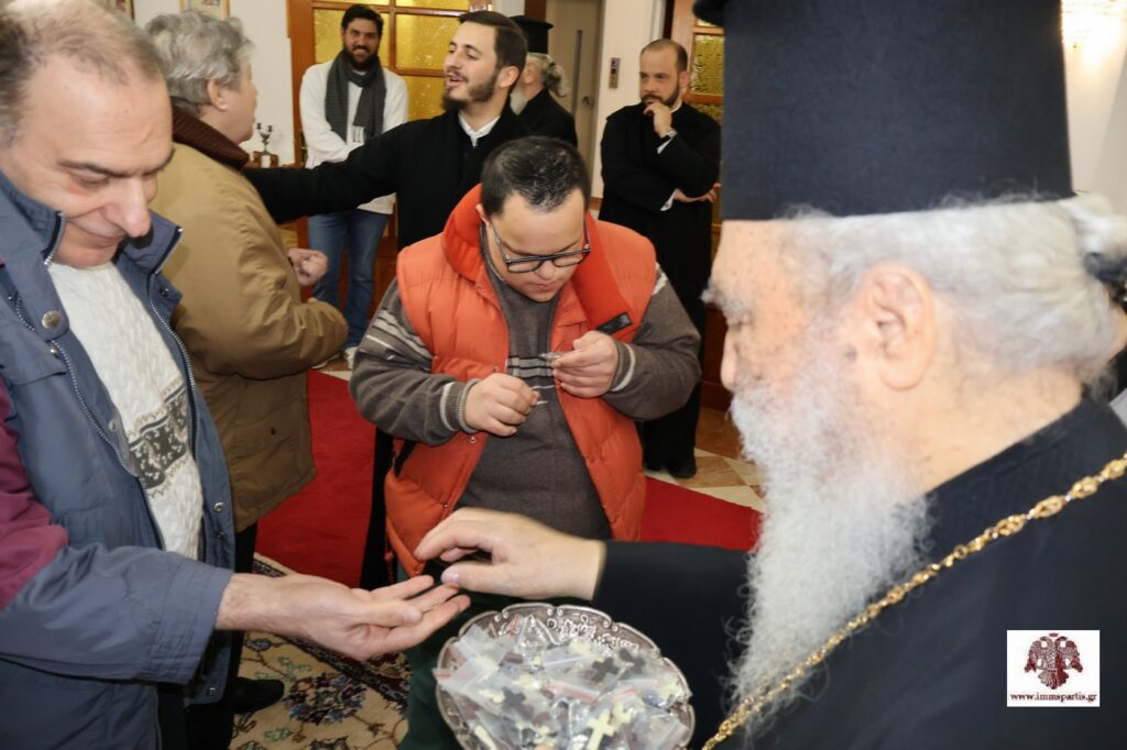 Η επίσκεψη ολοκληρώθηκε με τον σεβασμιώτατο να μοιράζει σε όλους σταυρουδάκια από τα Ιεροσόλυμα.