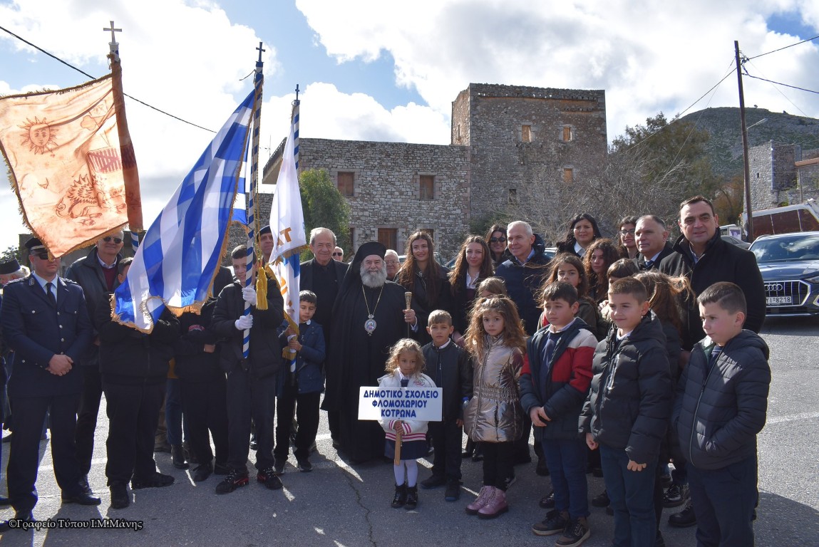 Μετά το πέρας της δέησης, εκπρόσωποι εκπαιδευτικών φορέων, μεταξύ των οποίων και προσωπικό από το δημοτικό σχολείο Φλομοχωρίου – Κότρωνα, κατέθεσαν στεφάνια. Ξεχωριστή στιγμή αποτέλεσε η απαγγελία πρωτότυπου ποιήματος από τους μαθητές, αφιερωμένου στον ήρωα, συγκινώντας βαθιά τους παρευρισκόμενους.