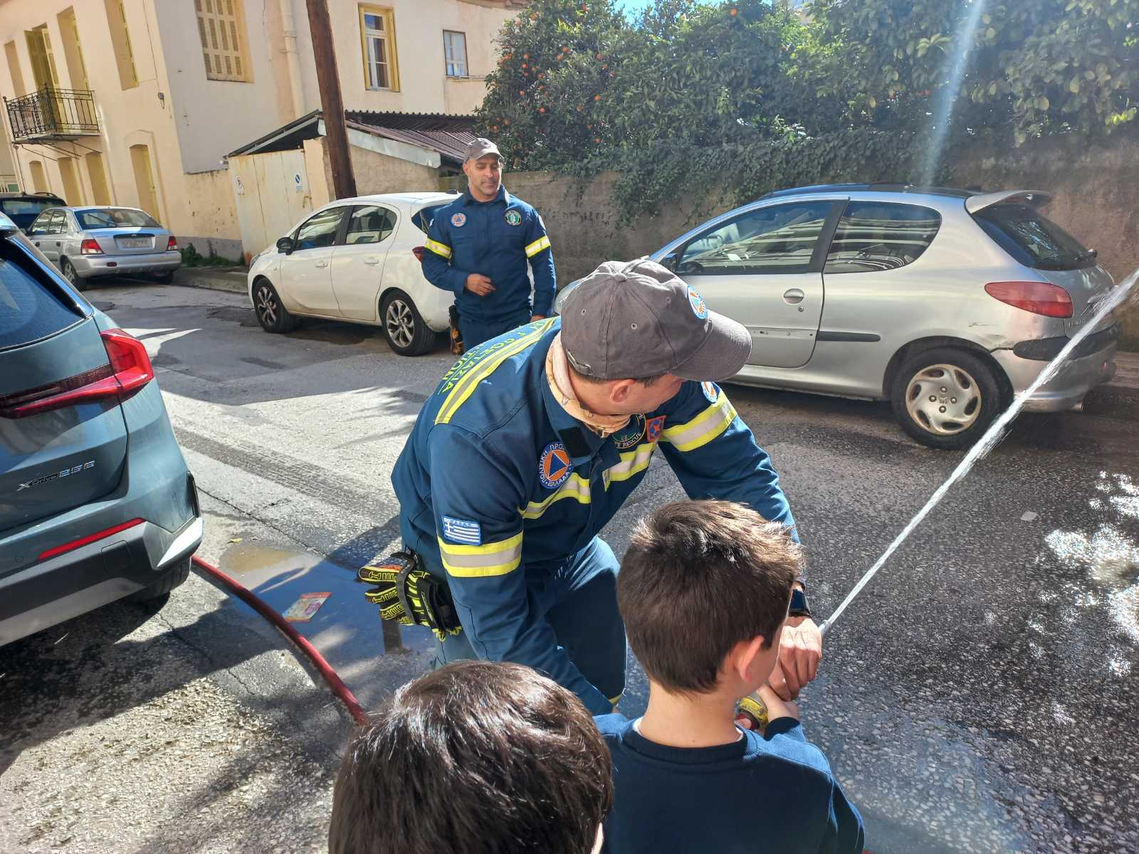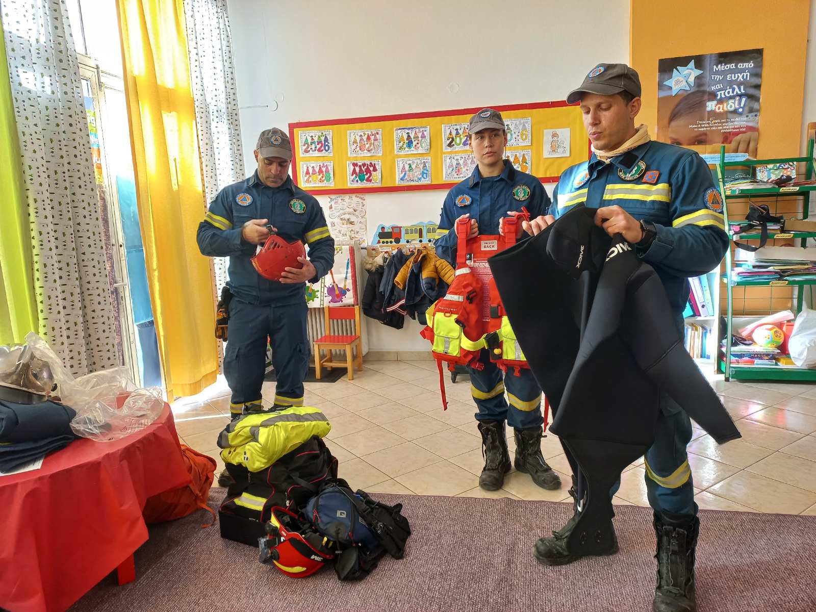 Με απλό και κατανοητό τρόπο, τα στελέχη της Πολιτικής Προστασίας εξήγησαν στους μικρούς μαθητές πώς πρέπει ν’ αντιδρούμε σε περιπτώσεις πυρκαγιών, σεισμών και πλημμυρών, δίνοντας έμφαση στη σωστή συμπεριφορά και στην ψυχραιμία που σώζουν ζωές. Παράλληλα, παρουσίασαν στα παιδιά τον βασικό εξοπλισμό που χρησιμοποιείται σε επιχειρήσεις διάσωσης και αντιμετώπισης εκτάκτων περιστατικών.
