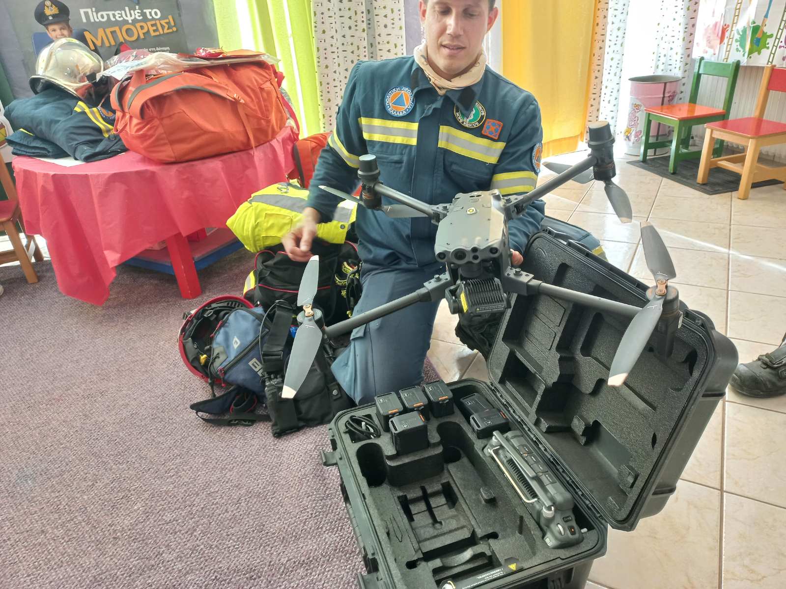 Ιδιαίτερο ενδιαφέρον προκάλεσε το drone της Πολιτικής Προστασίας, το οποίο μεταδίδει ζωντανή εικόνα από τις περιοχές συμβάντων στο Επιχειρησιακό Κέντρο του Δήμου, αλλά και ο εξοπλισμός τεχνικής διάσωσης και διάσωσης σε ορμητικά νερά, όπως ειδικές στολές, σωσίβια και κράνη. Οι μικροί μαθητές δεν έκρυψαν τον ενθουσιασμό τους, καθώς είχαν την ευκαιρία να δουν από κοντά, να αγγίξουν τον εξοπλισμό και να συμμετάσχουν σε επίδειξη ρίψης νερού, μετατρέποντας τη μάθηση σε βιωματική εμπειρία.