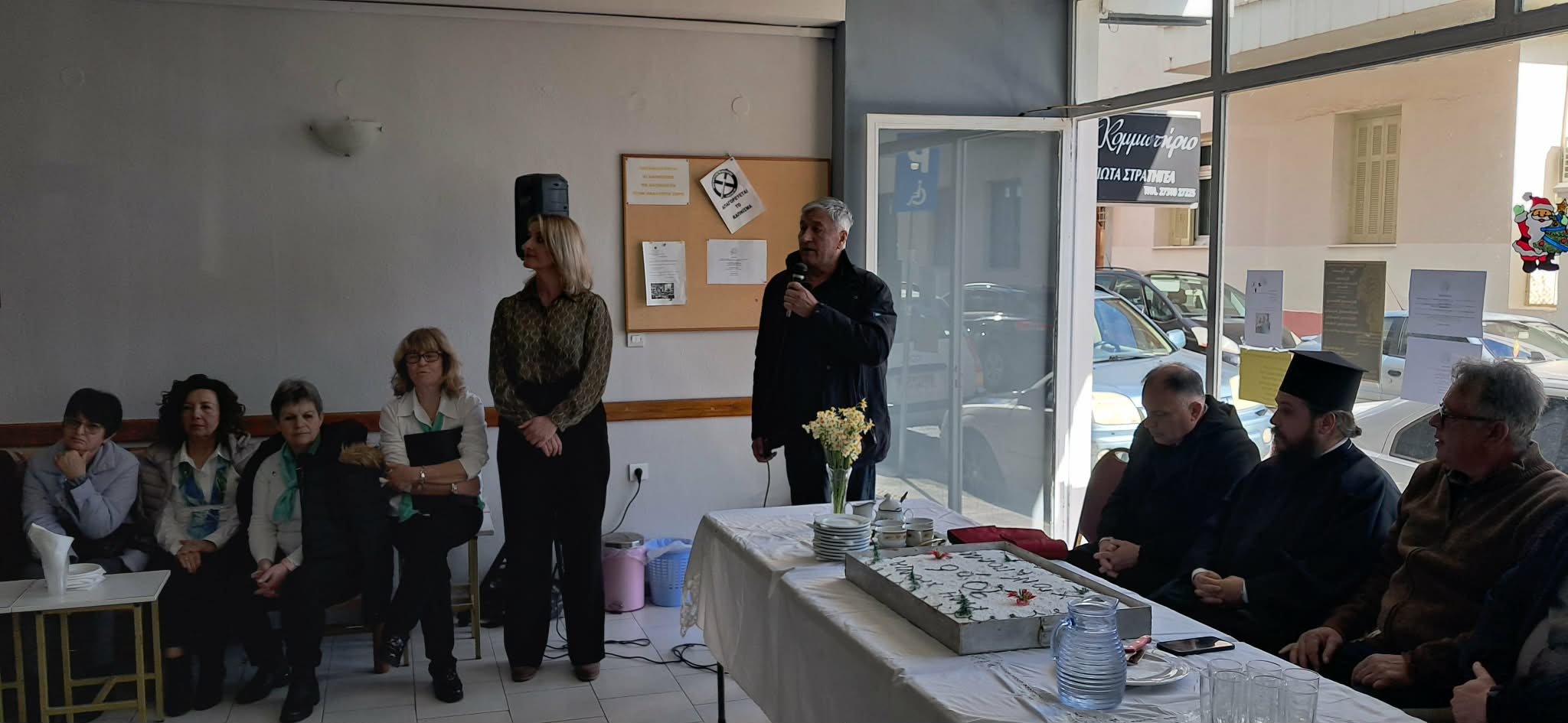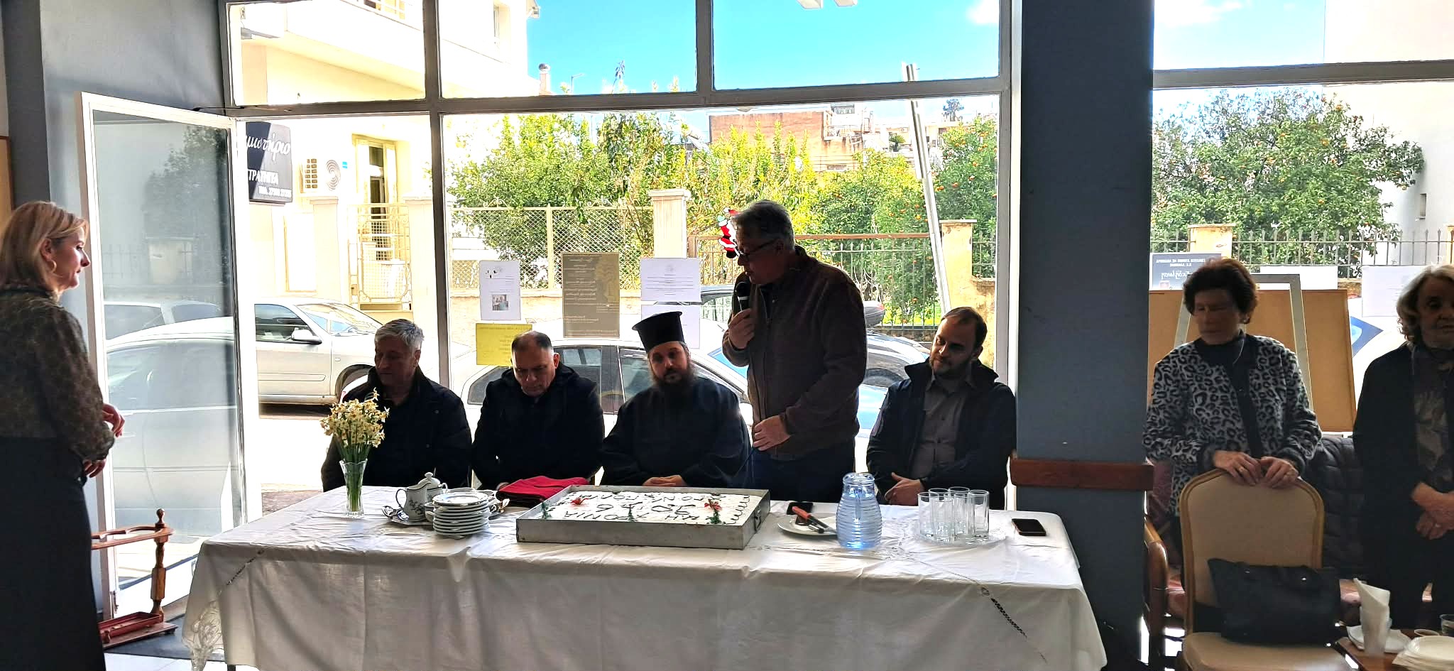 Ο πανοσιολογιότατος πατέρας Ευστάθιος Πορφύρης ευλόγησε την πίτα, μεταφέροντας τις εγκάρδιες ευχές του σεβασμιώτατου Μητροπολίτη Μονεμβασίας και Σπάρτης κ. Ευσταθίου.