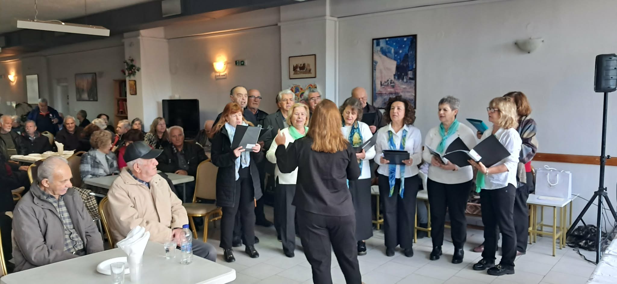 Αμέσως μετά την κοπή της πίτας, τα μέλη της χορωδίας του ΚΑΠΗ ζέσταναν περισσότερο την ατμόσφαιρα με εορταστικά τραγούδια.