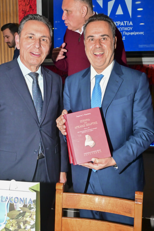 Χαιρετισμούς στη συγκέντρωση απηύθυναν ο πρόεδρος της ΔΕΕΠ Λακωνίας, Αντώνιος Κοκκονός, ο υπουργός Εθνικής Άμυνας και βουλευτής, Θανάσης Δαβάκης, οι βουλευτές Λακωνίας και Μεσσηνίας, Νεοκλής Κρητικός και Περικλής Μαντάς αντίστοιχα, ο ευρβουλευτής Δημήτρης Τσιόδρας, ο περιφερειάρχης Πελοποννήσου, Δημήτρης Πτωχός, οι δήμαρχοι Σπάρτης και Ευρώτα, Μιχάλης Βακαλόπουλος και Δήμος Βέρδος αντίστοιχα. Επίσης, στο βήμα για σύντομη παρέμβαση ανέβηκαν η εκπρόσωπος της ΝΔ στο Ευρωπαϊκό Λαϊκό Κόμμα, Χρυσαυγή Ατσιδάκου, και ο αναπληρωτής Γραμματέας Οργανωτικού για την Πελοπόννησο, Γιώργος Κυριακούλιας, ενώ αναγνώστηκε ευχετήριο μήνυμα του γραμματέα Οργανωτικού της ΝΔ, Στυλιανού Κονταδάκη.