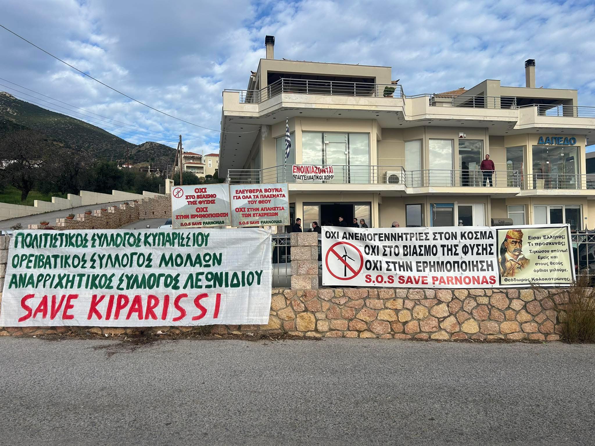 Εξέλιξη σημειώθηκε τη Δευτέρα (9/2), στην υπόθεση του έργου εγκατάστασης αιολικού πάρκου στον νοτιανατολικό Πάρνωνα, στην περιοχή του Κυπαρισσίου. Κατά τη διαδικασία συζήτησης των ασφαλιστικών μέτρων που έχουν καταθέσει σύλλογοι και κάτοικοι του Κυπαρισσίου, το Πρωτοδικείο Μολάων αποφάσισε την αναβολή της εκδίκασης, για τις 9 Μαρτίου, κατόπιν αιτήματος του νομικού εκπροσώπου της εταιρείας. Παράλληλα, η Πρόεδρος του Πρωτοδικείου διέταξε την προσωρινή διακοπή όλων των εργασιών έως την επόμενη δικάσιμο. Η απόφαση έγινε δεκτή με ανακούφιση και συγκρατημένη αισιοδοξία από εκπροσώπους των αντιδρώντων, καθώς θεωρείται «ανάσα» και μια πρώτη «νίκη», όπως χαρακτηρίζεται, για την προστασία του Πάρνωνα και του οικοσύστηματός του.