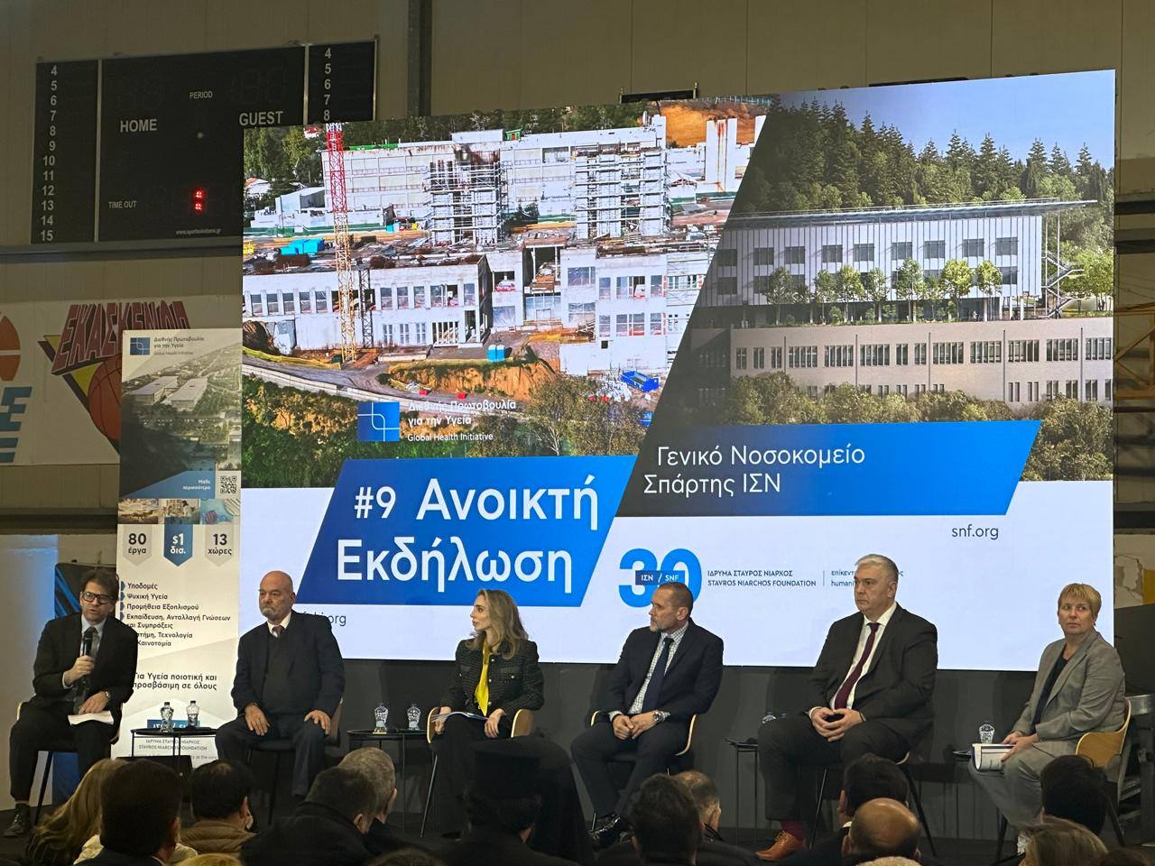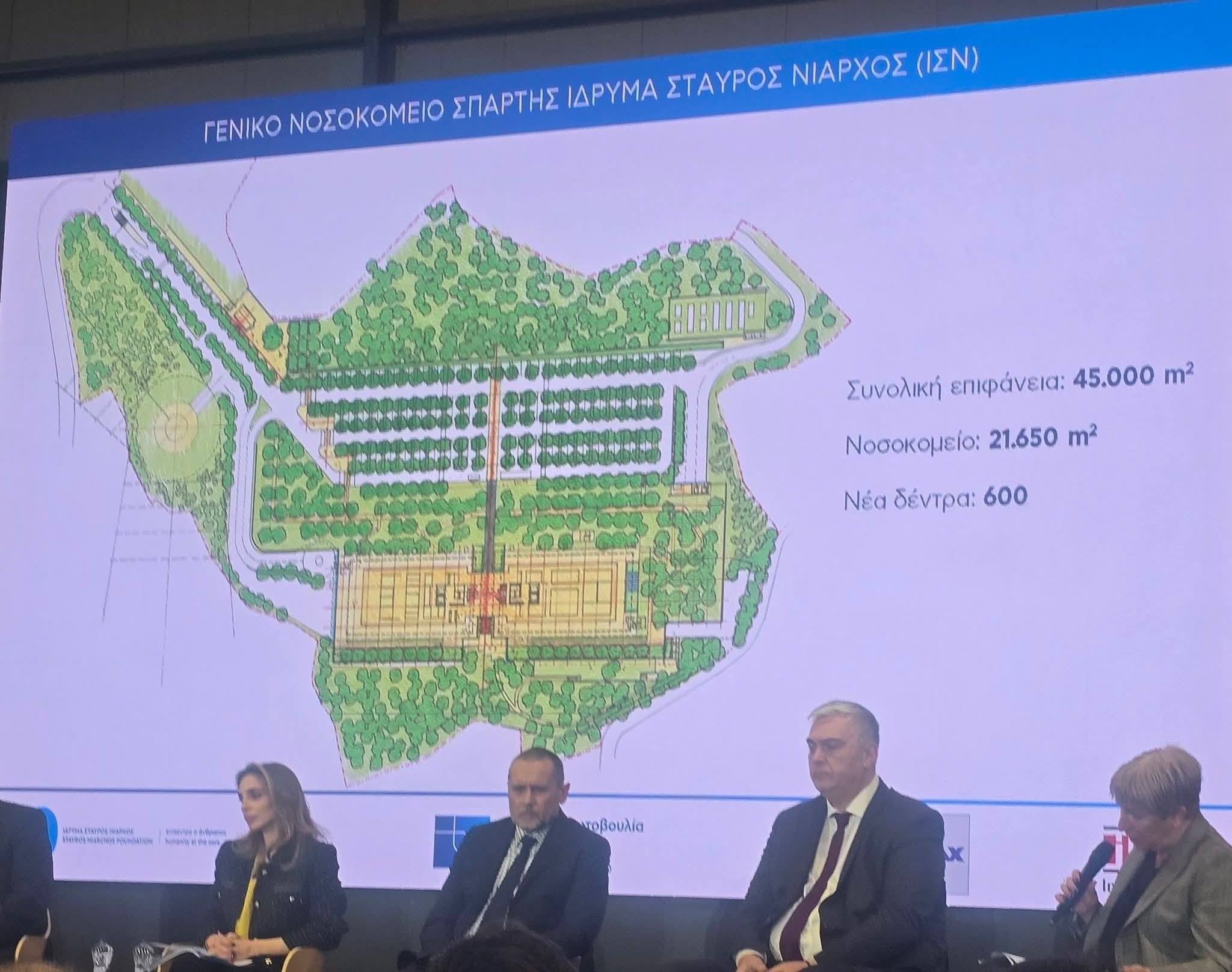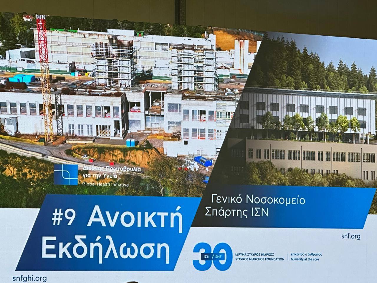Ο διοικητικός διευθυντής του ΙΣΝ, Πάνος Παπούλιας, αναφέρθηκε στο εύρος της παρέμβασης του Ιδρύματος στην Υγεία, σημειώνοντας: «Το νέο νοσοκομείο που κατασκευάζεται στη Σπάρτη εντάσσεται στη “Διεθνή Πρωτοβουλία για την Υγεία” του ΙΣΝ, που απαρτίζεται από δεκάδες δωρεές κι έχει συνολικό προϋπολογισμό πλέον του ενός δισεκατομμυρίου δολαρίων. Οι πολλές δωρεές που εδράζουν κάτω από την ομπρέλα της “Πρωτοβουλίας” λαμβάνουν χώρο στο εξωτερικό και στην Ελλάδα. Αφορούν υποδομές, εξοπλισμό, ψυχική υγεία, εκπαίδευση, έρευνα και επιστημονικές συνεργασίες. Το Πανεπιστημιακό Παιδιατρικό Νοσοκομείο Θεσσαλονίκης, το Νοσοκομείο Κομοτηνής και το Νοσοκομείο Σπάρτης, συμπυκνώνουν όλους τους προηγούμενους 5 πυλώνες. Αποτελούν από τα μεγαλύτερα κτιριακά πρότζεκτ αυτή τη στιγμή στον ελλαδικό χώρο και αν όχι το πιο πολύπλοκο, σίγουρα ένα από τα πιο πολύπλοκα».