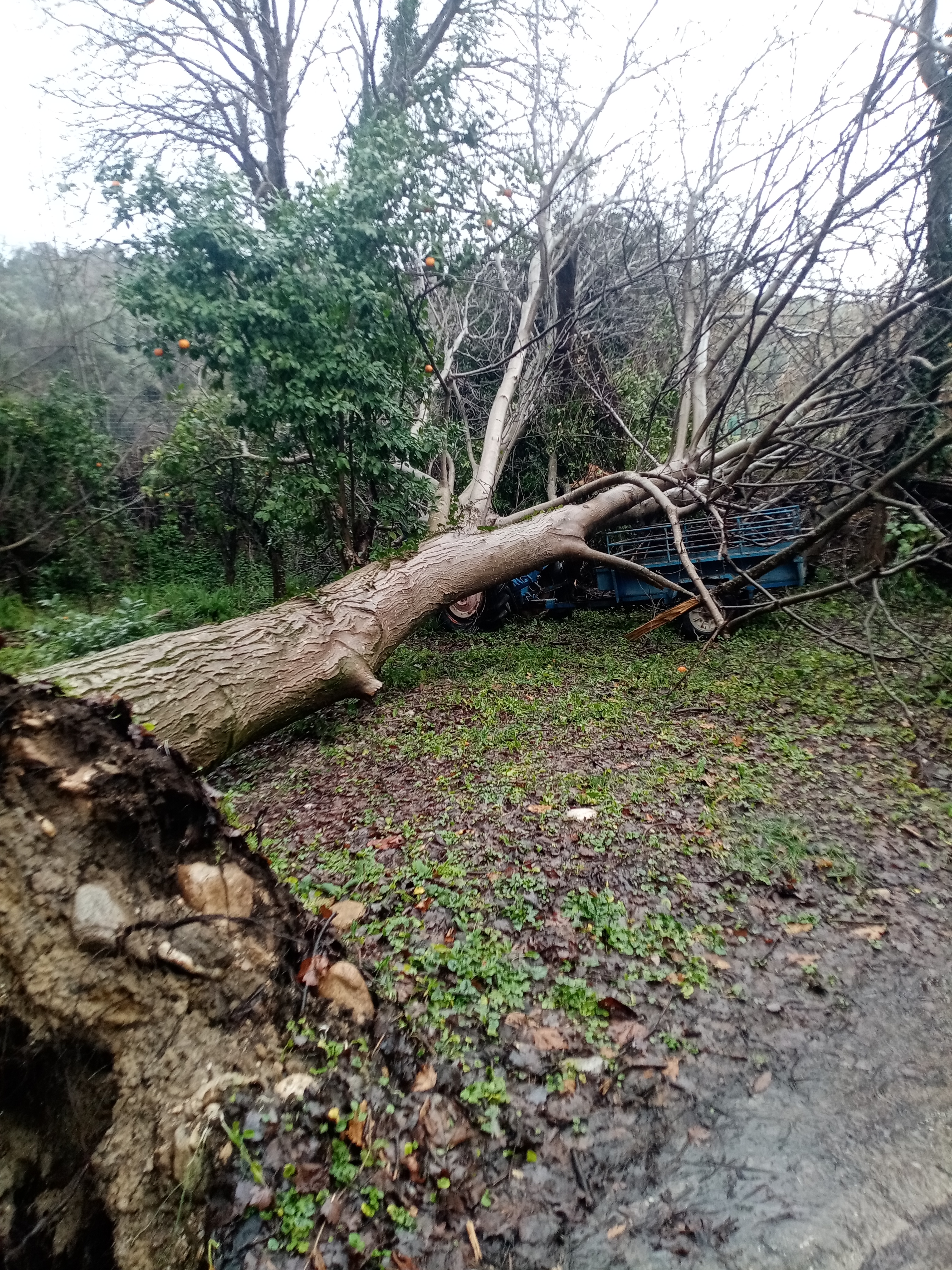 Ένα περιστατικό που αναδεικνύει πόσο απρόβλεπτες, αλλά και κοστοβόρες, μπορεί να γίνουν οι συνέπειες των έντονων καιρικών φαινομένων καταγράφηκε την Παρασκευή 13/2 στην Αγία Ειρήνη–Βάρσοβα, δίπλα στο ποτάμι Μαγουλίτσα. Μετά από τις ισχυρές βροχές και τους ανέμους των τελευταίων ημερών, μεγάλη καρυδιά ξεριζώθηκε σε αγροτοδασική έκταση, έπεσε και κατέληξε πάνω σε σταθμευμένο τρακτέρ, προκαλώντας σοβαρές ζημιές στο αγροτικό μηχάνημα. Οι ρίζες του δέντρου βγήκαν στην επιφάνεια, αποκαλύπτοντας την ένταση του φαινομένου.