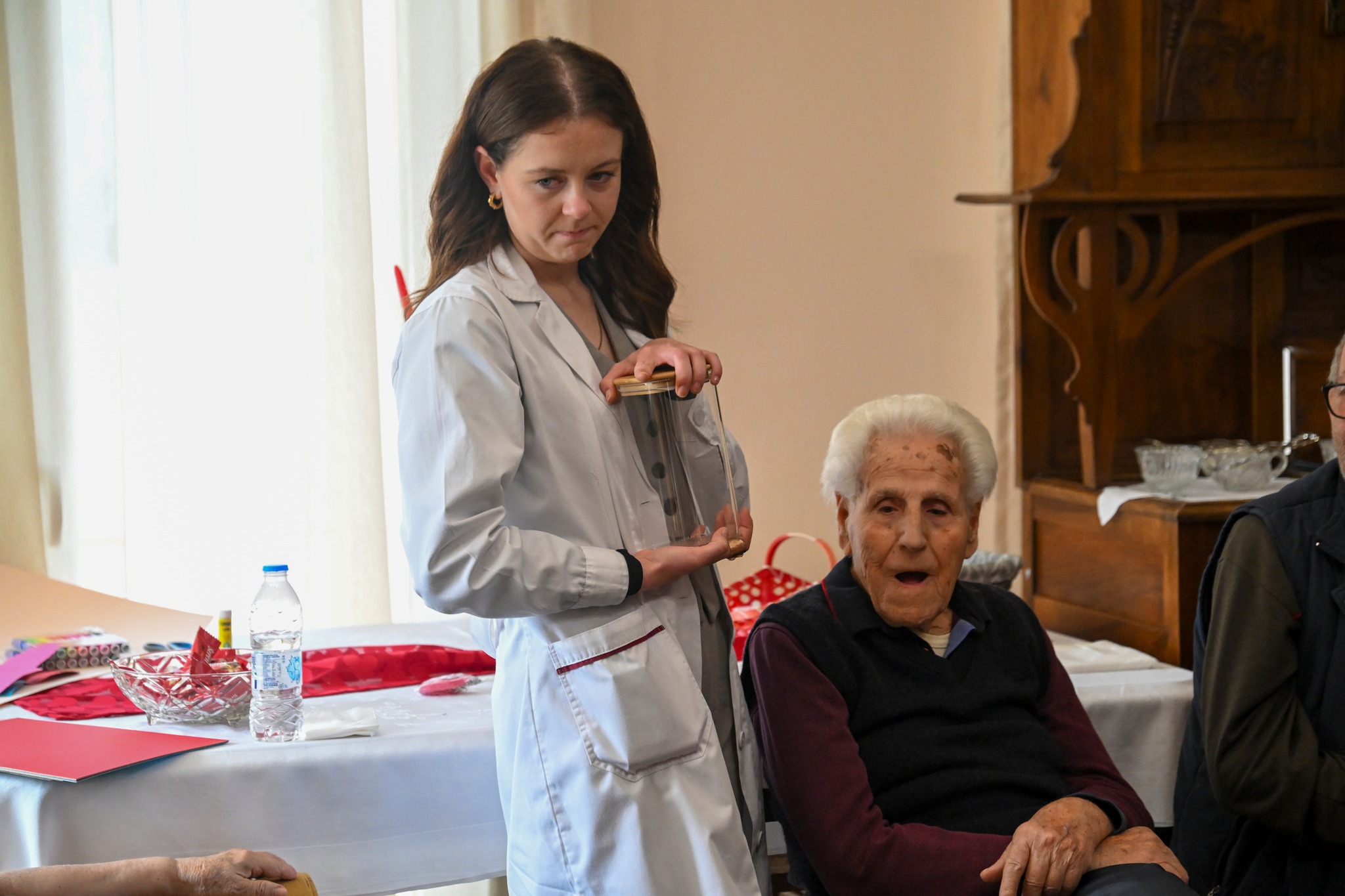 Η πρόεδρος του Γηροκομείου, Κωνσταντίνα Λυμπιωτάκου, μαζί με τους νοσηλευτές και τις νοσηλεύτριες, συμμετείχαν ενεργά, ενισχύοντας τη ζεστή και οικογενειακή ατμόσφαιρα. Η στιγμή που κάποιοι ηλικιωμένοι προσπάθησαν να επιστρέψουν το λουλούδι που τους είχε προσφερθεί στην αρχή της εκδήλωσης, ως ένδειξη ευχαριστίας και αγάπης, ανέδειξε τον βαθύ συμβολισμό της γιορτής: «Η αγάπη, όταν δίνεται αληθινά, πάντα επιστρέφει».