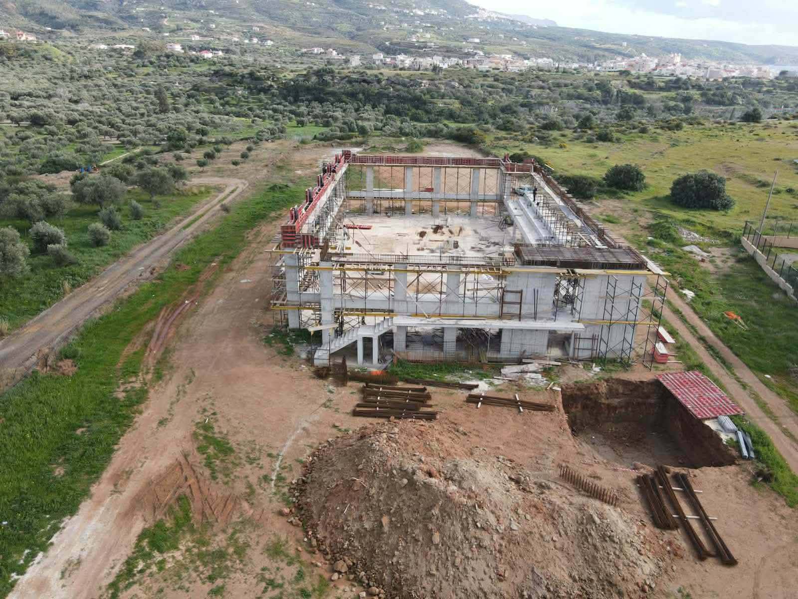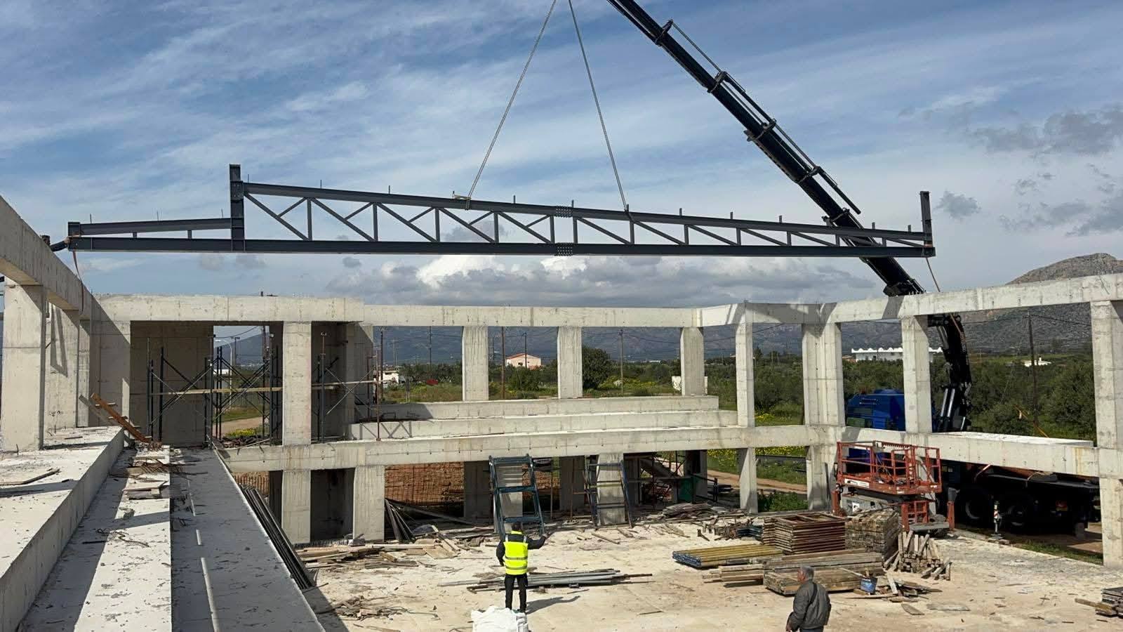 Με γοργά και σταθερά βήματα προχωρούν οι εργασίες κατασκευής του νέου Κλειστού Γυμναστηρίου στη Νεάπολη Βοιών. Το έργο βρίσκεται σε σημαντικό στάδιο εξέλιξης, καθώς αυτό το διάστημα τοποθετούνται τα μεταλλικά ζευκτά της στέγης, ένα κρίσιμο τεχνικό στάδιο που σηματοδοτεί την ουσιαστική πρόοδο της κατασκευής.