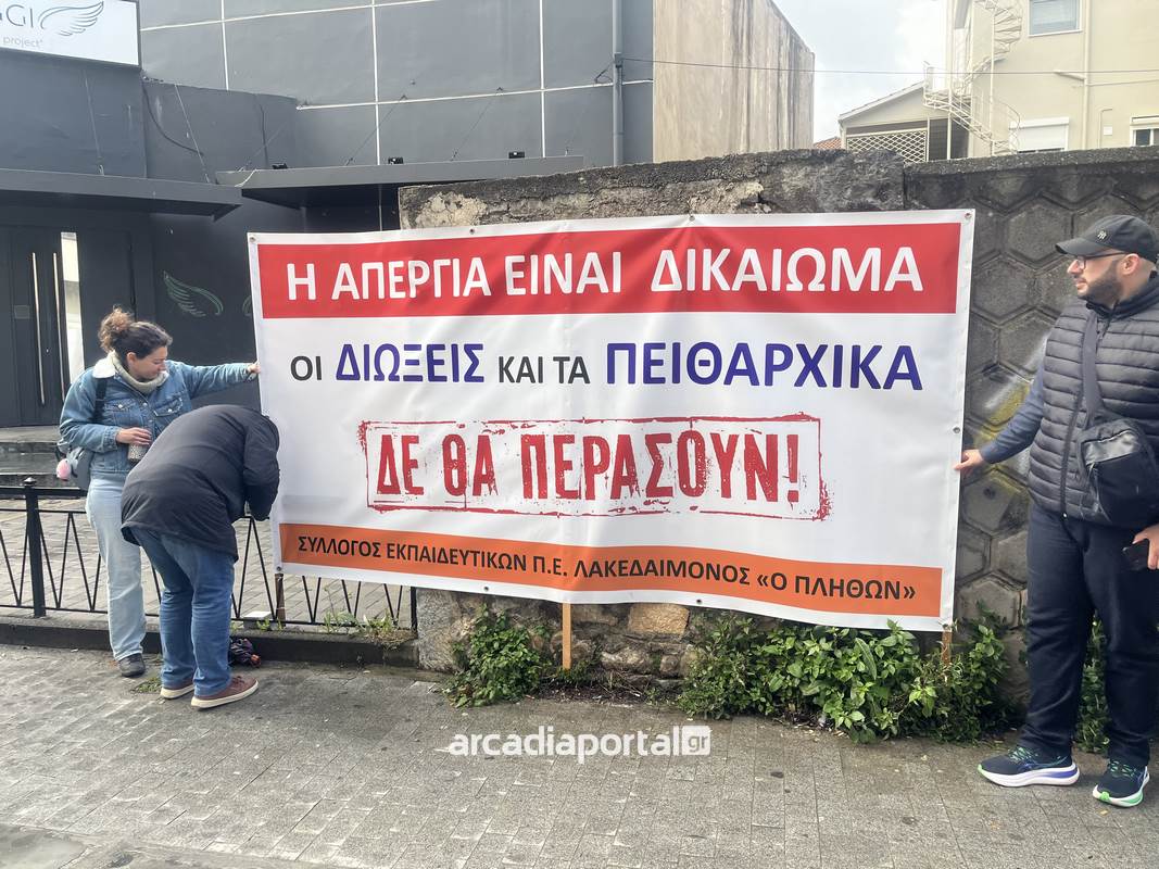 Από νωρίς, εκπαιδευτικοί από την Αθήνα και την Πελοπόννησο συγκεντρώθηκαν έξω από τα γραφεία της Περιφερειακής Διεύθυνσης Εκπαίδευσης Πελοποννήσου, παρά τις δύσκολες καιρικές συνθήκες, εκφράζοντας τη συμπαράστασή τους στους διωκόμενους συναδέλφους.