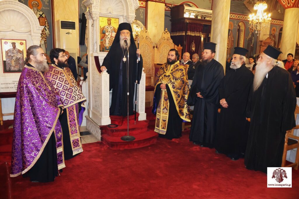 Πριν την ολοκλήρωση της ακολουθίας, πραγματοποιήθηκε η χειροθεσία εις Πνευματικούς δύο Αρχιμανδριτών, μελών της αδελφότητας της Ιεράς Μονής Αγίων Αναργύρων Πάρνωνος, του π. Λεοντίου Βαρδάκη και του π. Νικοδήμου Καρκαμπάση.