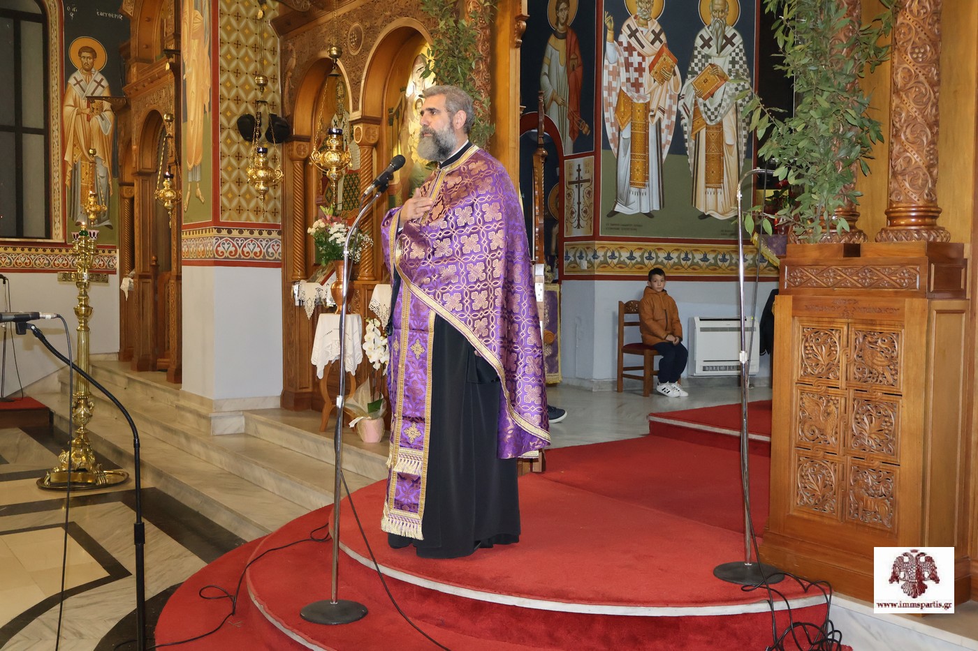 Πνευματικό λόγο στο εκκλησίασμα απηύθυνε με γλαφυρότητα, ο ιεροδιάκονος της ΙΜΜΣ, π. Αρσένιος Μπουρουϊάνα. Κατακλείοντας την ιερή ακολουθία, ο Μητροπολίτης Ευστάθιος, με αφορμή την παραβολή των δέκα παρθένων, αναφέρθηκε στην απέραντη αγάπη προς τον Άνθρωπο που τρέφει ο δοκιμαζόμενος Χριστός, ο οποίος ως Νυμφίος, ζητάει τη σύνδεση με κάθε ανθρώπινη ψυχή.