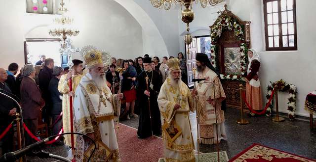 Μετά την ευλόγηση των άρτων, ο κ. Ευστάθιος αναφέρθηκε με θερμά λόγια στη σημασία της Παναγίας Χρυσαφίτισσας για την ιστορική Μονεμβασία, ενώ ευχαρίστησε τον φιλοξενούμενο ιεράρχη, εξάρωντας το πολυσχιδές έργο του στην Εκκλησία της Ελλάδος. Από την πλευρά του, ο κ. Επιφάνιος, στο μεστό και ουσιαστικό κήρυγμά του, ανέδειξε τον παιδαγωγικό ρόλο της Υπεραγίας Θεοτόκου, υπογραμμίζοντας πως μέσα από την πίστη, την ταπείνωση, τη σιωπή και τον πόνο της διδάσκει τον άνθρωπο να αντλεί δύναμη από την αγάπη Της και τον Τριαδικό Θεό.