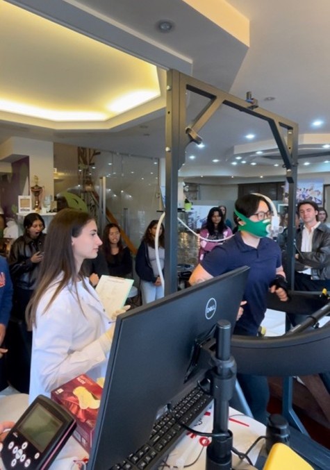 Οι φοιτητές παρακολούθησαν και συμμετείχαν ενεργά σε: εργομετρική αξιολόγηση με ανάλυση παραμέτρων VO₂max και αναπνευστικής ανταλλαγής, ιατρική αξιολόγηση δεικτών υγείας, λιπομέτρηση και ανάλυση σύστασης σώματος με τη SECA 515, μέτρηση Βασικού Μεταβολικού Ρυθμού (BMR) μέσω έμμεσης θερμιδομετρίας, καθώς και ανθρωπομετρικές μετρήσεις σε εθελοντές. Κάθε διαδικασία εξηγήθηκε αναλυτικά, δημιουργώντας ένα ζωντανό εκπαιδευτικό εργαστήριο.