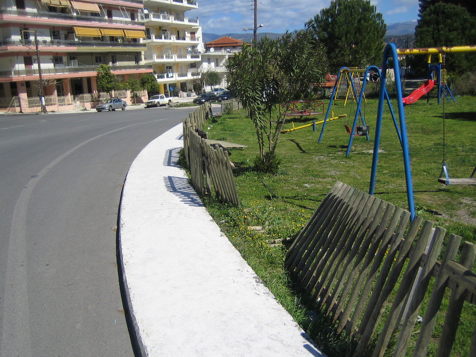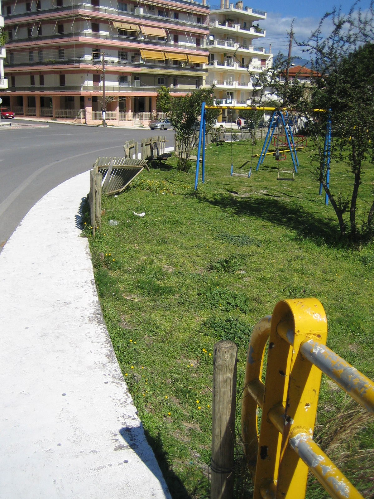 Μια τέτοια πολύ επικίνδυνη παιδική χαρά βρίσκεται στη Σπάρτη παραπλεύρως της γέφυρας Α. Νικολάου, σε απόλυτη γειτνίαση (!!!) μ’ έναν δρόμο αρκετά μεγάλης κυκλοφορίας. Από χρόνια πολλά η περίφραξη αυτής της παιδικής χαράς έχει καταστραφεί και τα κατά καιρούς «μπαλώματα» δεν φτάνουν για να την καταστήσουν ασφαλή. Σήμερα η περίφραξη είναι και πάλι κατεστραμμένη καθιστώντας άκρως επισφαλή την χρήση της συγκεκριμένης παιδικής χαράς .
