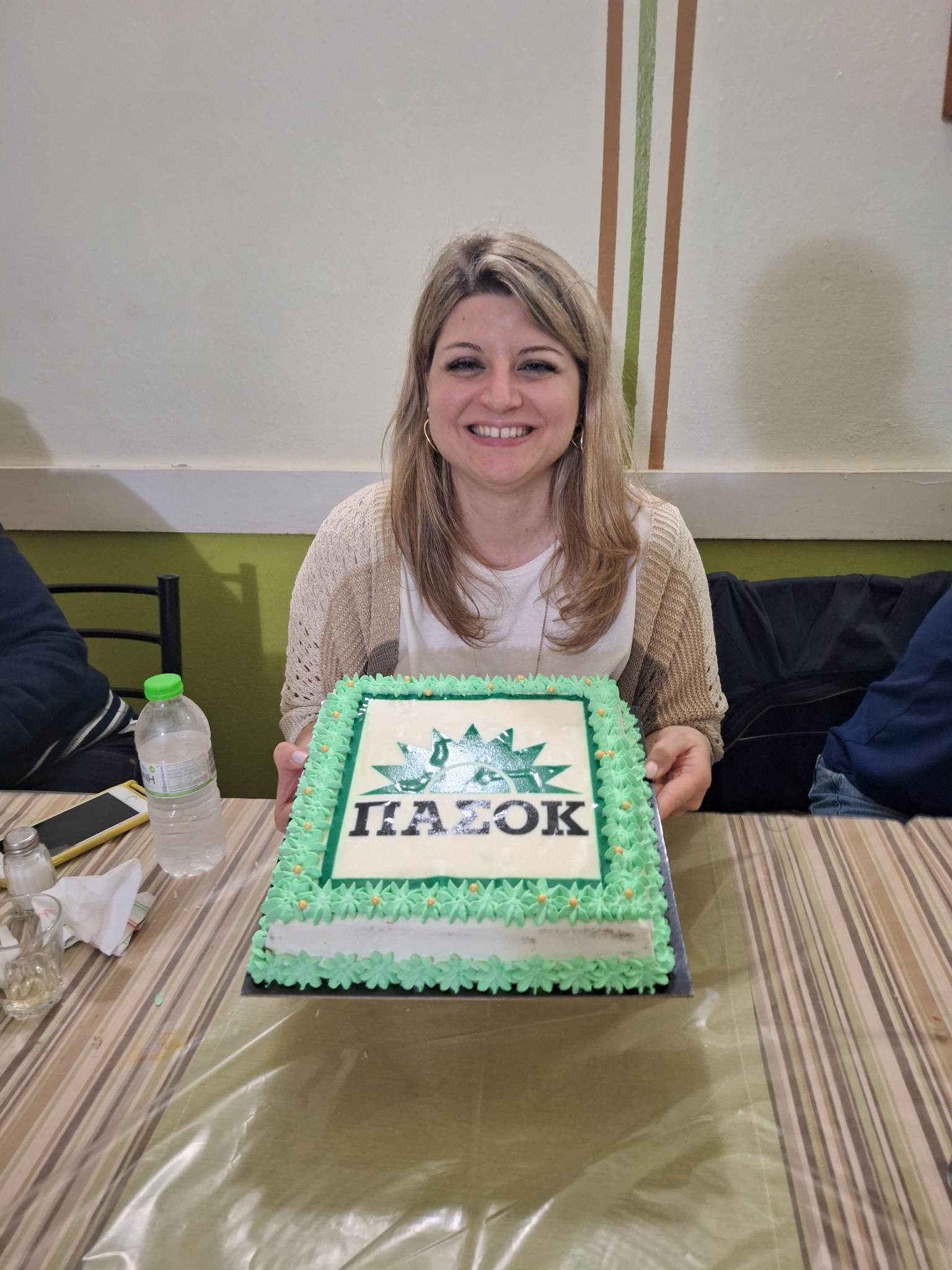 Το επιστέγασμα της βραδιάς ήταν μια γλυκιά έκπληξη που περίμενε την «ρούκι» τ. βουλευτή. Μία τούρτα διακοσμημένη με κεντρικό θέμα -τι άλλο;- τον «ήλιο» και τα χρώματα του ΠΑΣΟΚ. Το γλύκισμα δεν προσφέρθηκε χάριν κάποιας επετείου (πχ γενέθλια), αλλά οι φίλοι και συνεργάτες της «πράσινης» υποψήφιας προσδοκούν ότι το βράδυ της 25ης Ιουνίου, η ίδια θα σβήσει τα «πρώτα κεράκια» της εκ νέου εισόδου της στη Βουλή.