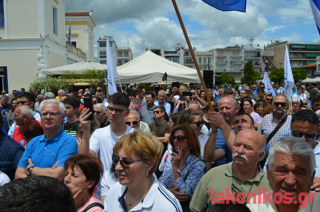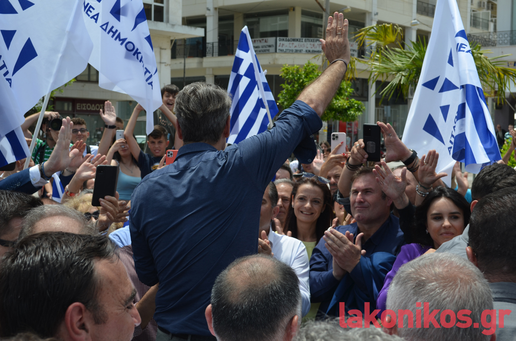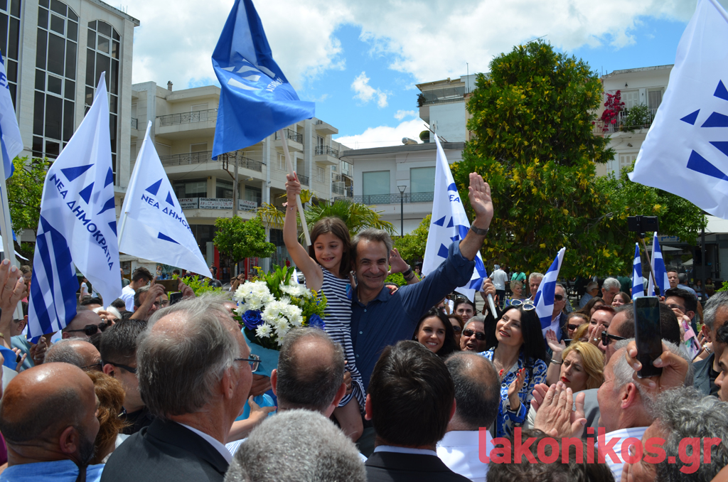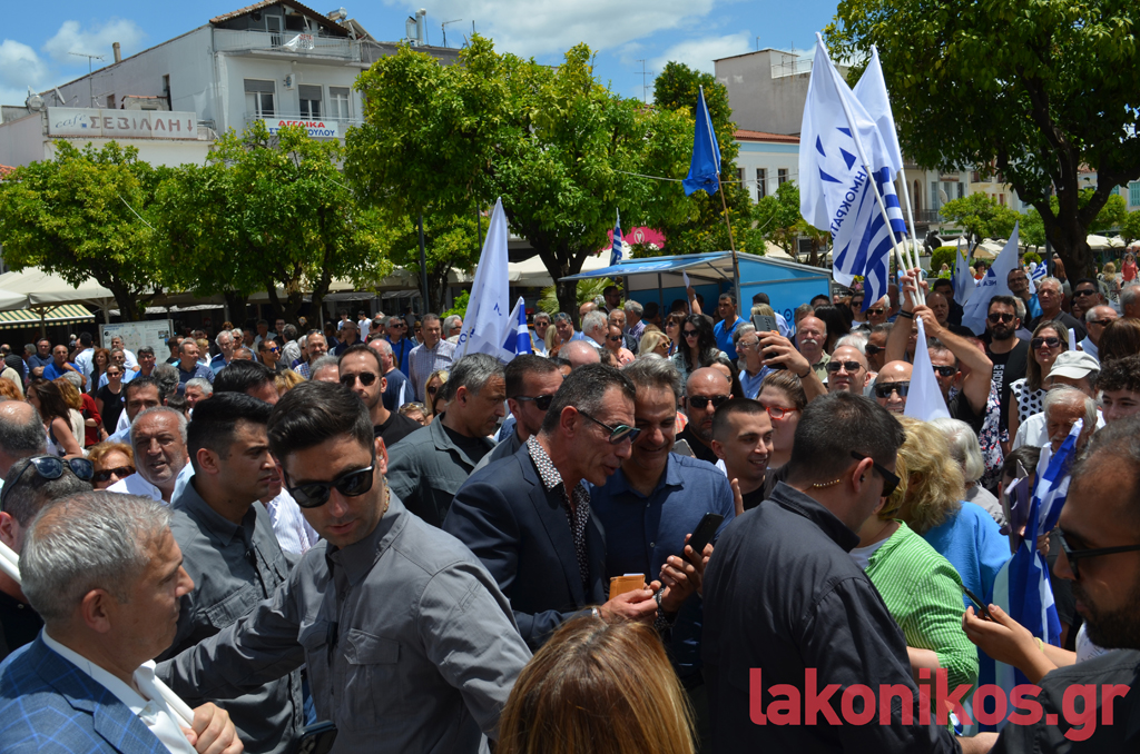 Μια «γαλάζια» πανστρατιά προς τις κάλπες της 25ης Ιουνίου καταγράφηκε το Σάββατο 17 Ιουνίου κατά την περιοδεία του προέδρου της Νέας Δημοκρατίας, Κυριάκου Μητσοτάκη, στη Λακωνία. Εκτός από το κοινό της παράταξης που υποδέχτηκε με θέρμη και ενθουσιασμό τον τ. πρωθυπουργό σε Σπάρτη και Γύθειο, στο πλευρό του επικεφαλής του κόμματος βρίσκονταν στελέχη και πολιτευτές της ΝΔ από τη Λακωνία και όχι μόνο.