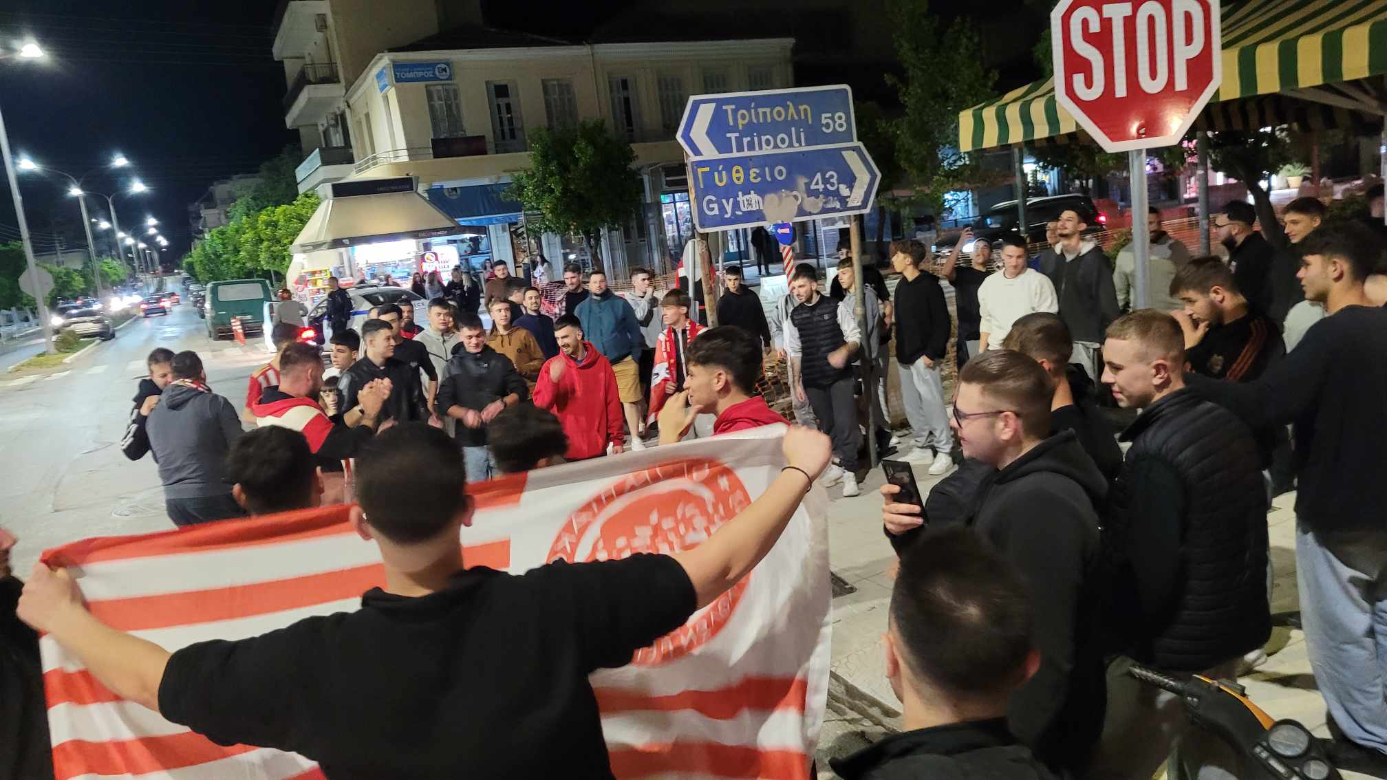 Πίσω στη Σπάρτη, μετά το πέρας του νικηφόρου αγώνα, εξάλλου, ξέφρενοι πανηγυρισμοί ξέσπασαν από φίλους των «ερυθρολεύκων» στο κέντρο της πόλης. Με συνθήματα, σημαίες και κασκόλ, εκδήλωσαν τον μεγάλο ενθουσιασμό τους για τον θρίαμβο της αγαπημένης τους ομάδας. Τα δε κορναρίσματα οχημάτων, που συμμετείχαν στη «γιορτή», έδιναν κι έπαιρναν στις μποτιλιαρισμένες Λυκούργου και Παλαιολόγου, ενώ τέτοια ήταν η έκσταση των φιλάθλων που κάποιοι μπήκαν και στο περίφημο βαρέλι του τροχονόμου. Μια φορά συμβαίνουν αυτά, άλλωστε. Ας ελπίσουμε να είναι ο προάγγελος και άλλων ανάλογων αθλητικών -και μη- στιγμών για τη χώρα...