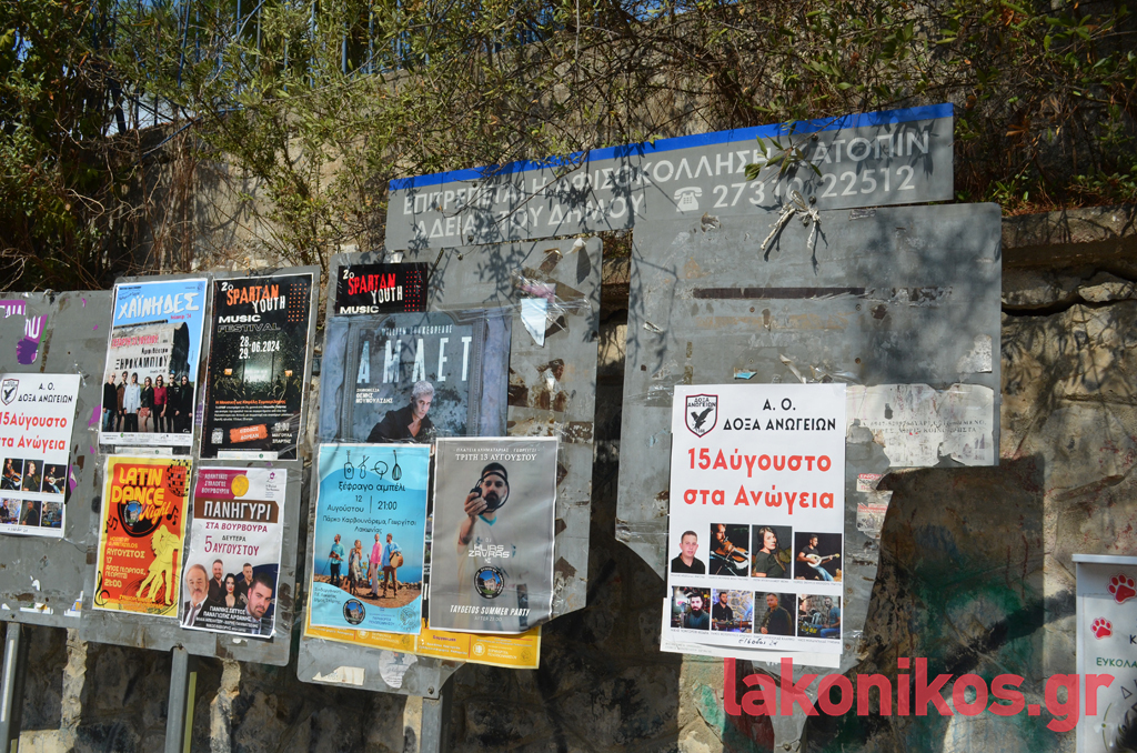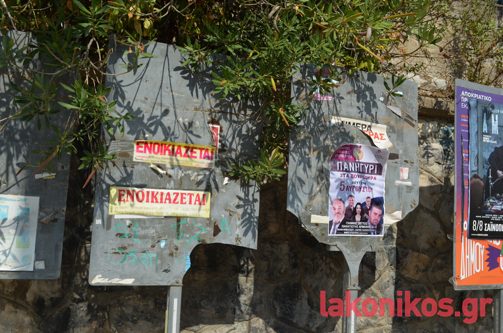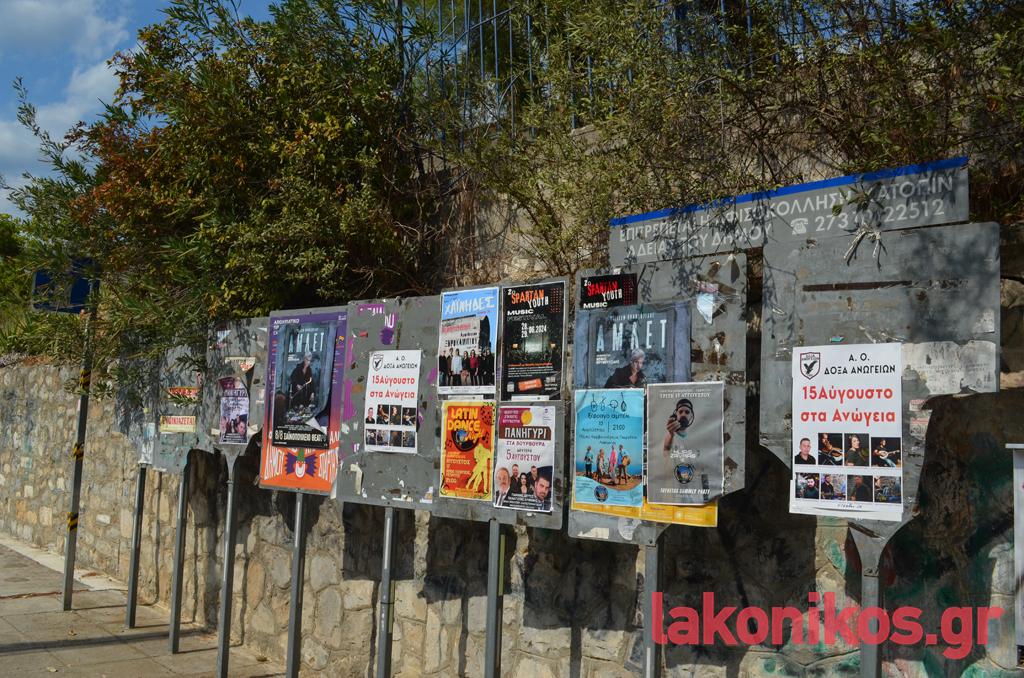 Στον αντίποδα, περιθωριοποιημένοι και στο κακό τους χάλι στέκουν οι μεταλλικοί πίνακες αφισοκόλλησης μπροστά από τις σχολικές μονάδες του 1ου και του 2ου ΓΕΛ Σπάρτης, επί της Κ. Παλαιολόγου. Αυτές μάλιστα έχουν καταστεί έως και επικίνδυνες για τους διερχόμενους, αφού σε πολλά σημεία είναι σπασμένες και αιχμηρές.