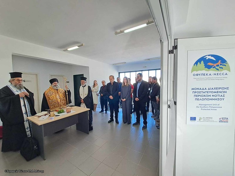 Τα εγκαίνια του νεοσύστατου παραρτήματος της Μονάδος Διαχείρισης Προστατευομένων Περιοχών Νοτίου Πελοποννήσου και του Οργανισμού Φυσικού Περιβάλλοντος και της Κλιματικής Αλλαγής (ΟΦΥΠΕΚΑ), που στεγάζεται στο Διοικητήριο Αρεόπολης Αν. Μάνης, πραγματοποιήθηκαν την Πέμπτη 16 Νοεμβρίου.