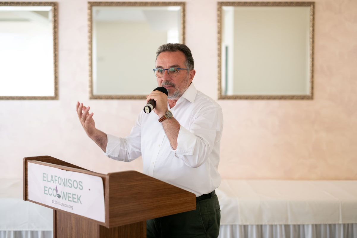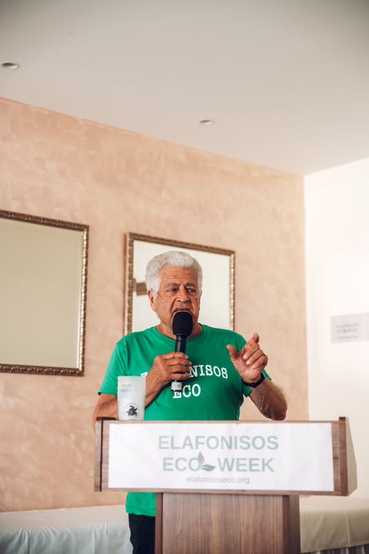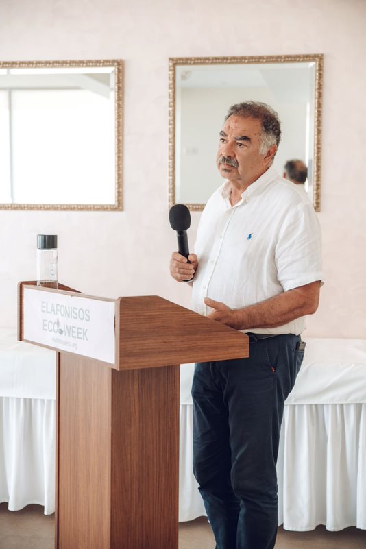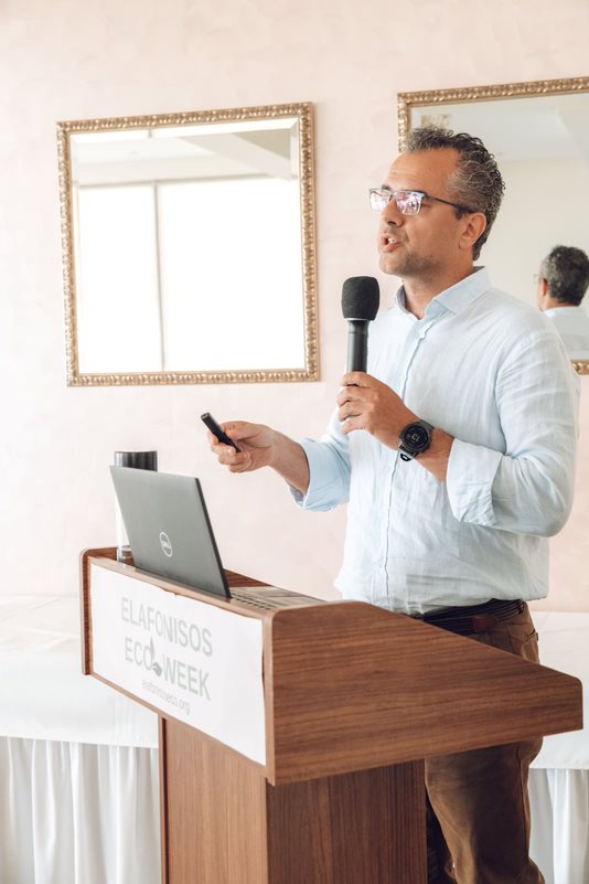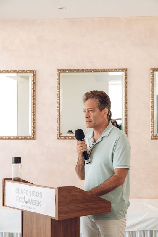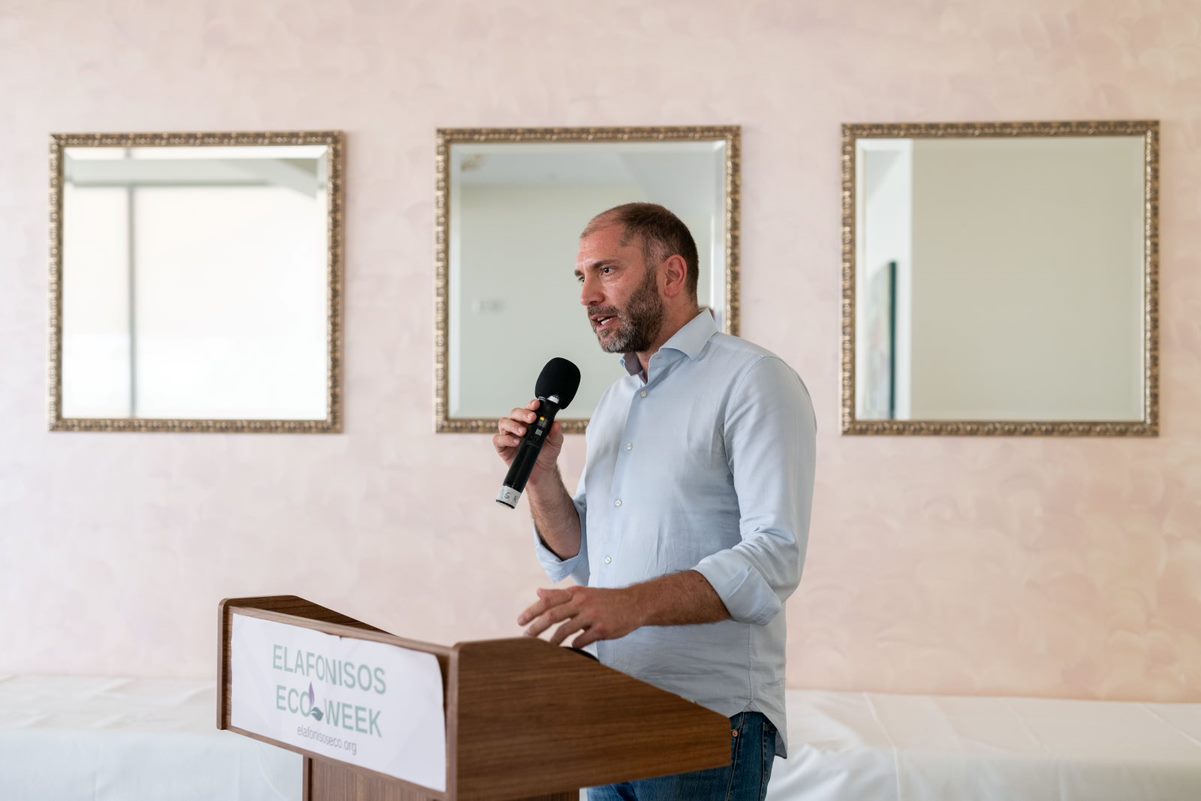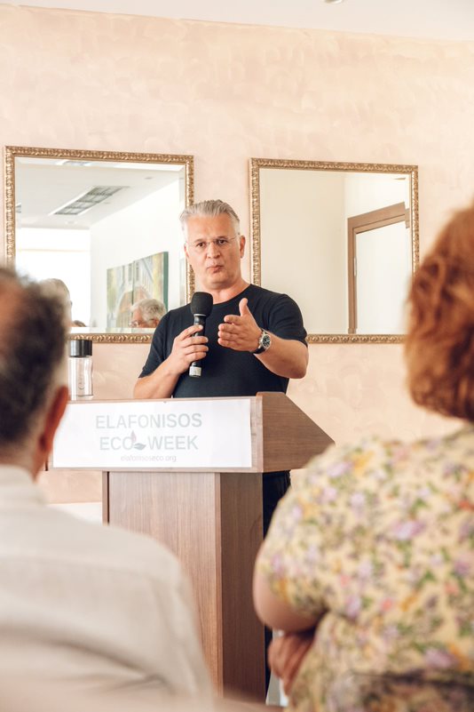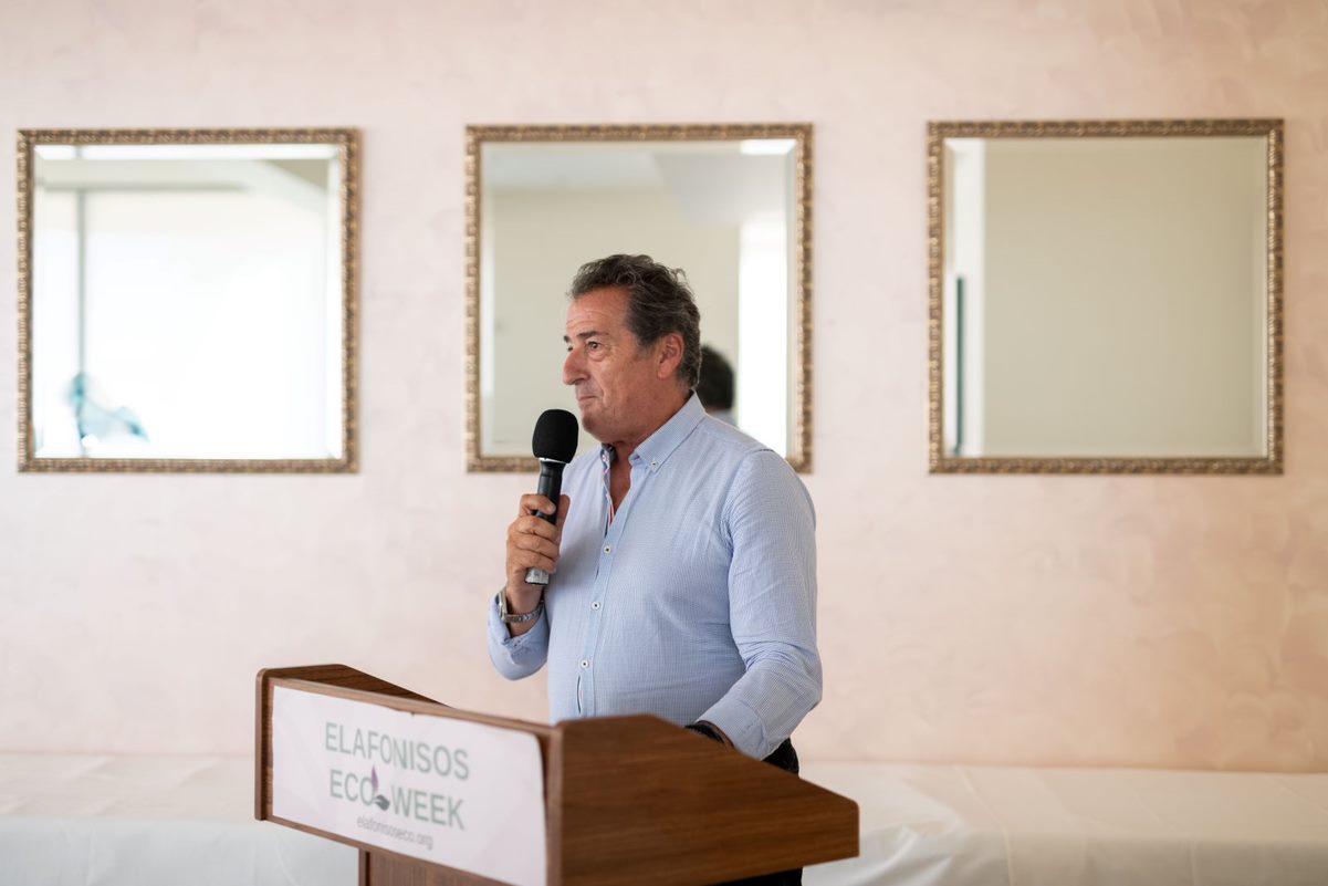 Ο Άγγελος Τσιριγωτάκης, δήμαρχος Ελαφονήσου, εστίασε στο ότι «από τη δεκαετία του '90 και μετά οι ντόπιοι πέρασαν από το ψάρεμα, ως την κύρια πηγή εισοδήματός τους, στον τουρισμό». Είπε επίσης ότι «ο τουρισμός είναι απαραίτητος για την Ελαφόνησο, αλλά με βιώσιμο τρόπο, μέσω μιας ισορροπημένης προσέγγισης. Η εισβολή των λεοντόψαρων και ο ανεξέλεγκτος πολλαπλασιασμός αποτελούν μεγάλο πρόβλημα, και για τον λόγο αυτόν προτείνει τρόπους ενσωμάτωσης του λεοντόψαρου στην τοπική διατροφή». Ακόμα, ενημέρωσε ότι έχει υπογραφεί συμφωνία επεξεργασίας λυμάτων της Ελαφονήσου και ότι θα εφαρμοστούν μέθοδοι διαχείρισης των απορριμμάτων.