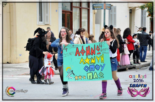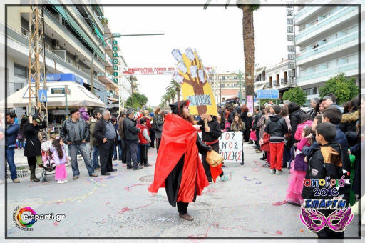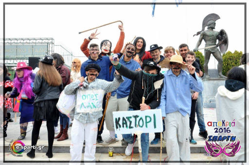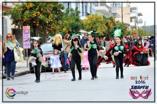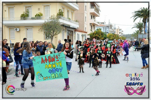 Ευκαιρία για πλάκες, τραγούδι, χορό και ξεφάντωμα πρόσφερε η αποκριάτικη παρέλαση του Δήμου Σπάρτης Mascarata 2016 για τέταρτη συνεχόμενη χρονιά με την υποστήριξη του αθλητικού και πολιτιστικού συλλόγου Ολυμπιακό Κέντρο Σπάρτης και το 300ο Σύστημα προσκόπων Σπάρτης. Ως μέρος της ελληνικής παράδοσης, μια μάσκα μας βοήθησε να γυρίσουμε στα παιδικά μας χρόνια, της αθωότητας, του αυθορμητισμού και της καλής διάθεσης, τότε που τα κάναμε όλα με φαντασία και ενθουσιασμό. Η αποκριάτικη παρέλαση mascarata της Σπάρτης είναι μια καλλιτεχνική επανάσταση για τα πληρώματα. Οι μάσκες και οι στολές γίνονται το τέλειο εργαλείο για μία δημιουργική εκτόνωση από την καθημερινότητά μας.