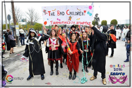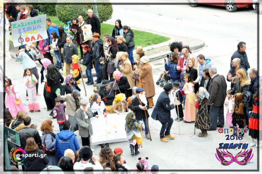 Ο σύλλογος γονέων του 5ου Δημοτικού Σχολείου Σπάρτης για άλλη μια χρονιά παρέλασε με το πρωτότυπο θέμα: Bad Boys, ενώ γονείς και παιδιά από τη Μαγούλα ντύθηκαν και παρέλασαν ως Ζώα και κυνηγοί. Την παρέλαση έκλεισαν οι καρναβαλιστές από το πανέμορφο Καστόρι προετοιμάζοντας την Σπάρτη για την επερχόμενη Μουτζουροδευτέρα.