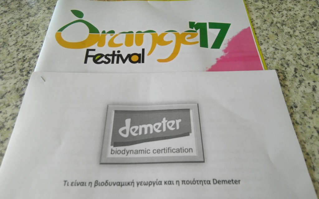 Τρίτη και Τετάρτη, 25 και 26 Ιουλίου πραγματοποιήθηκε στα πλαίσια του Orange Festival 2017 μια ακόμη εμβόλιμη δράση σε συνεργασία με τους «Λακωνικούς Κήπους» επιστημονικού επιπέδου για την πιστοποίηση Demetre. Η δράση είχε ως άξονα την ενημέρωση Λακώνων παραγωγών για την διαδικασία της βιοδυναμικής γεωργίας και την πιστοποίηση Demetre αναγνωρίζοντας στην Ευρώπη ως προϊόντα ποιότητας με μεγάλο αγοραστικό κοινό.