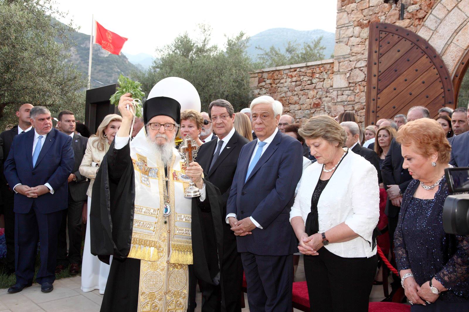 Σε μια λαμπερή εκδήλωση με έντονο κοσμικό χαρακτήρα, που παρουσίασε η γνωστή ηθοποιός Ζέτα Μακρυπούλια, παρέστησαν ο Πρόεδρος της Ελληνικής Δημοκρατίας Πρ. Παυλόπουλος, ο Πρόεδρος της Κυπριακής Δημοκρατίας Ν. Αναστασιάδης, ο πρόεδρος του κυπριακού κοινοβουλίου Δ. Συλλούρης και ο πρώην Πρόεδρος της Κύπρου Δ. Χριστόφιας. Ακόμα, ο Αρχιεπίσκοπος Αμερικής κ. Δημήτριος, ο σεβασμιώτατοι Μητροπολίτες Μονεμβασίας & Σπάρτης κ. Ευστάθιος και Μάνης κ. Χρυσόστομος. Το «παρών» έδωσαν, επίσης, ο Αρχηγός της Ελληνικής Αστυνομίας, Αντιστράτηγος Κ. Τσουβάλας, ο υπουργός Ναυτιλίας και Νησιωτικής Πολιτικής Π. Κουρουμπλής, ο γενικός γραμματέας Συντονισμού του Υπουργείου Εσωτερικών Τζ. Φιλιππάκος, οι πρώην υπουργοί Μιλτ. Βαρβιτσιώτης και Τ. Σκανδαλάκης και οι Λάκωνες βουλευτές Στ. Αραχωβίτης, Θ. Δαβάκης και Λ. Γρηγοράκος.