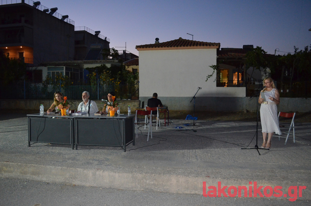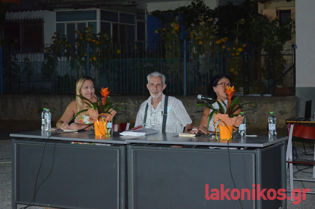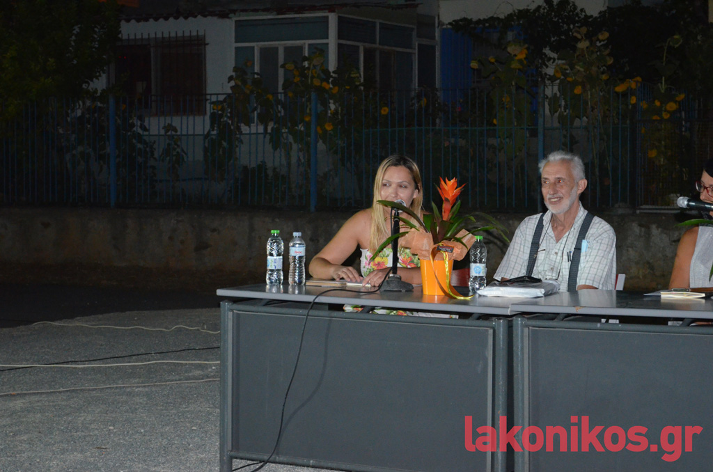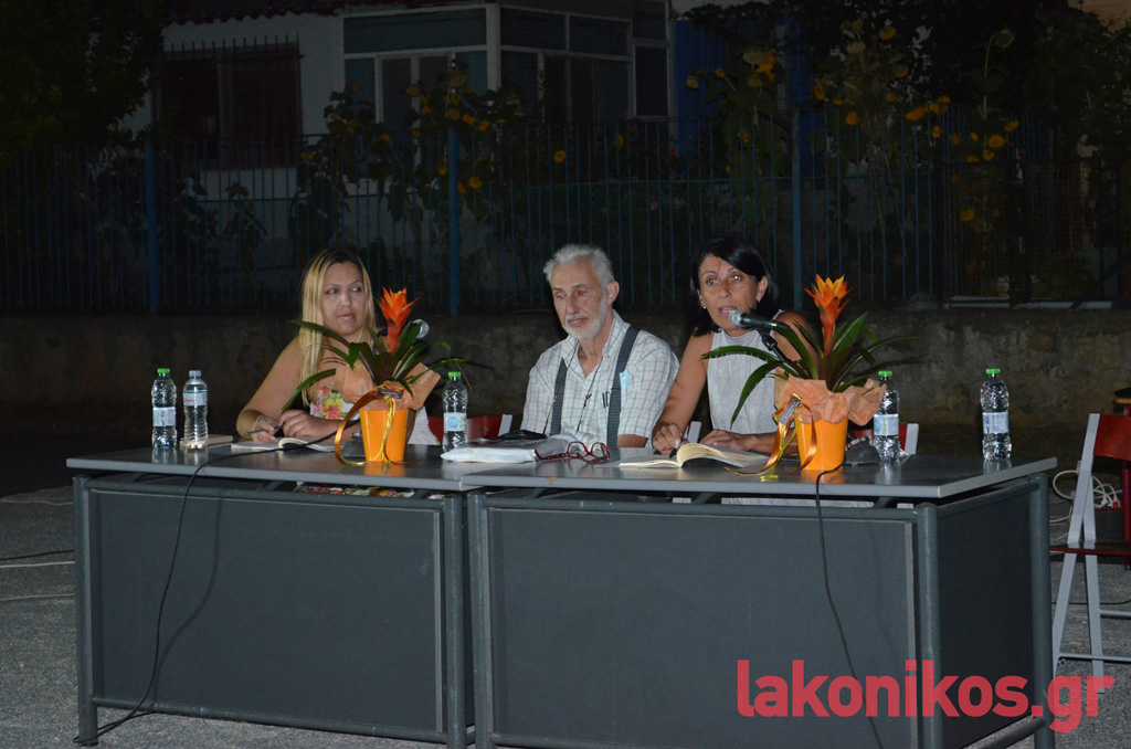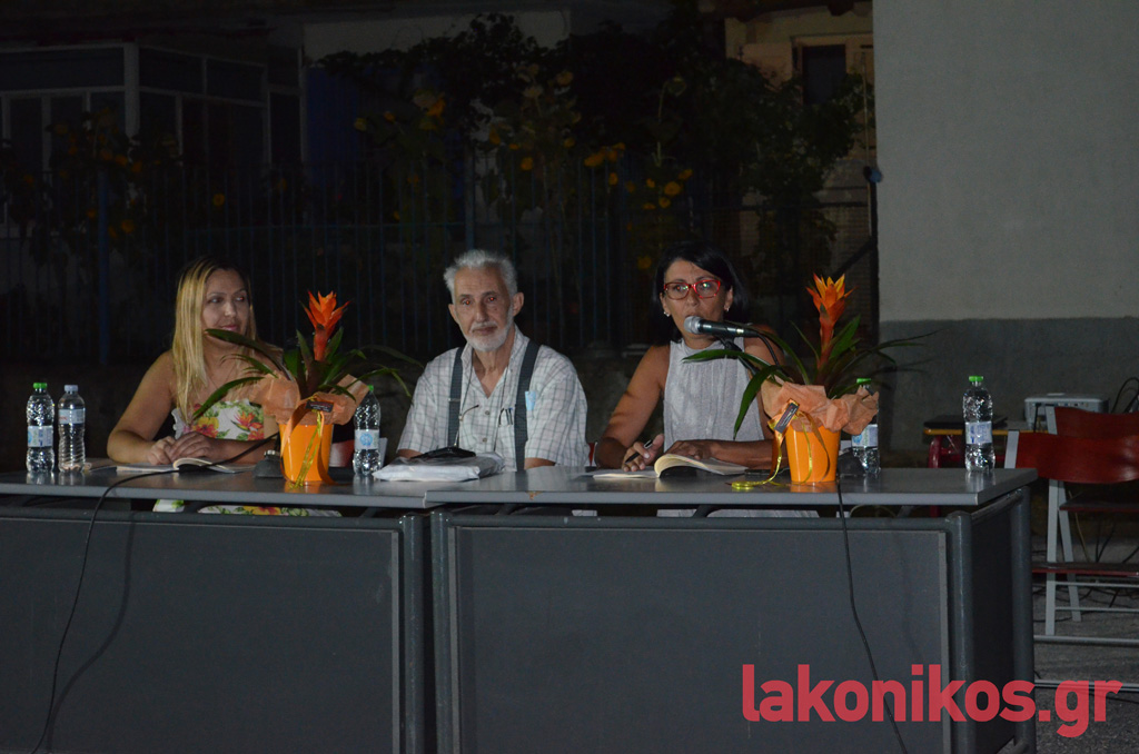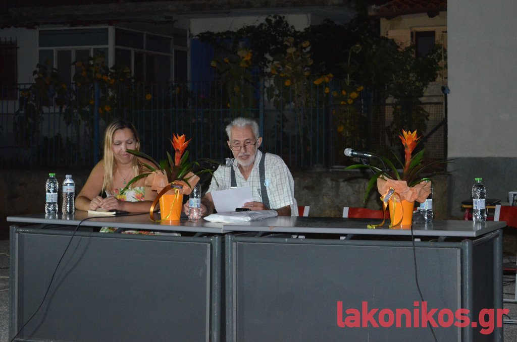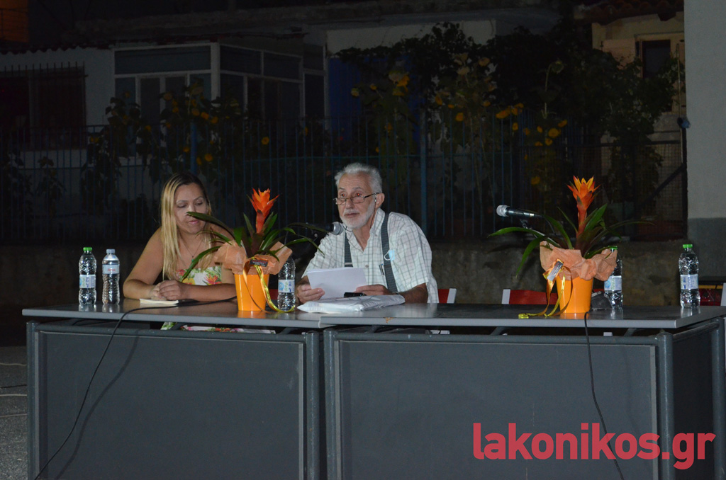Ακολούθως, η συντονίστρια της εκδήλωσης κ. Ελένη Τζικάκου ανέγνωσε μηνύματα της κ. Αθηνάς Ζωγράφου-προέδρου της Ένωσης Φιλολόγων Φλώρινας και του πρώην δημάρχου Σπάρτης κ. Δημοσθένη Ματάλα, οι οποίοι έπλεξαν το εγκώμιο της συγγραφικής προσπάθειας του Γ. Ανωγειάτη κι ανέδειξαν πτυχές της προσωπικότητάς του. Στη συνέχεια, στο βήμα ανέβηκαν ο πρόεδρος της Ένωσης Πνευματικών Δημιουργών Λακωνίας κ. Νικόλαος Κουφός κι ο εκδότης της «Αδούλωτης Μάνης» κ. Γιώργος Δημακόγιαννης, που με τη σειρά τους αναφέρθηκαν στο πάθος και το ταλέντο του συγγραφέα, αλλά και στα κοινωνικά μηνύματα που διαχρονικά επιχειρεί να μεταδώσει στο κοινό μέσα από τα βιβλία του.