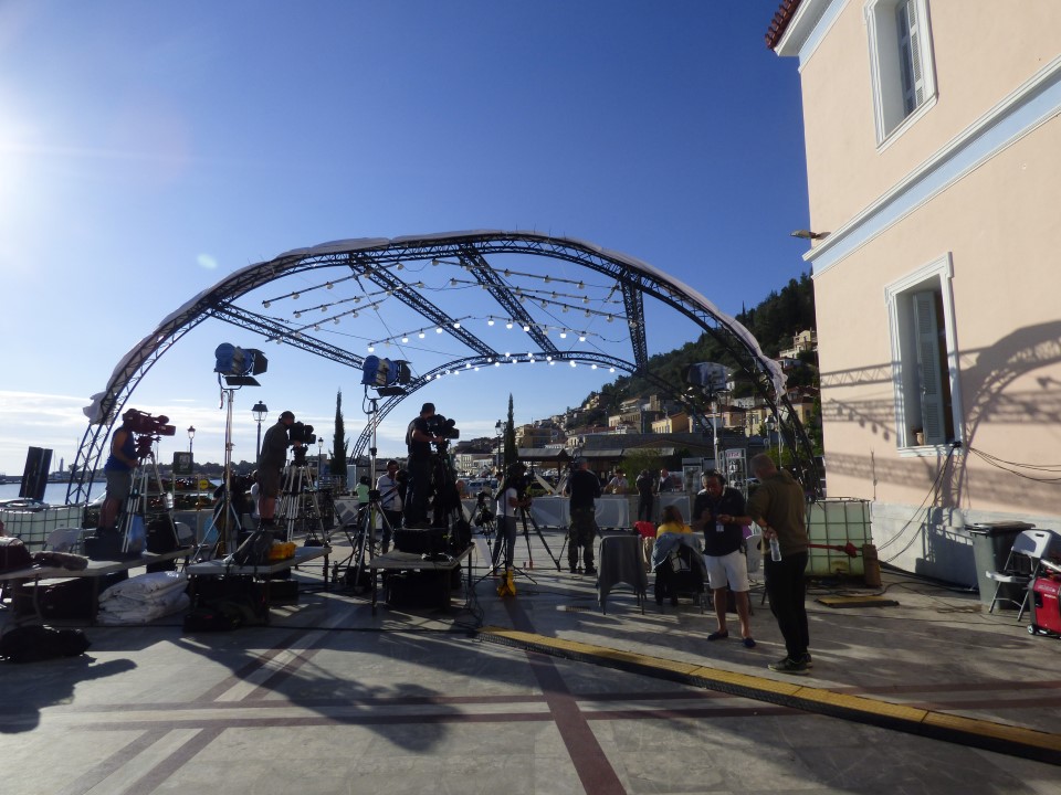 Σε υπαίθριο τηλεοπτικό στούντιο έχει μετατραπεί τις τελευταίες ημέρες η πλατεία του Δημαρχείου στο Γύθειο, στο πλαίσιο γυρισμάτων που πραγματοποιούνται στην ευρύτερη περιοχή του Δήμου Ανατολικής Μάνης από βελγική εταιρεία παραγωγής τηλεοπτικών προγραμμάτων.
