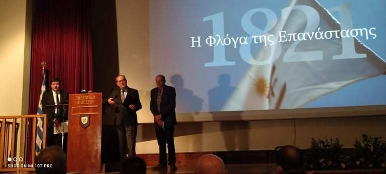 Η πρώτη προβολή της δραματοποιημένης ταινίας τεκμηρίωσης του Μανούσου Μανουσάκη «1821 – Η Φλόγα της Επανάστασης» έγινε το απόγευμα της Δευτέρας 13 Δεκεμβρίου, στο Πολεμικό Μουσείο Αθηνών, παρουσία του περιφερειάρχη Πελοποννήσου Παναγιώτη Νίκα, στελεχών της Περιφέρειας, αλλά και πολλών Πελοποννήσιων της Αττικής.