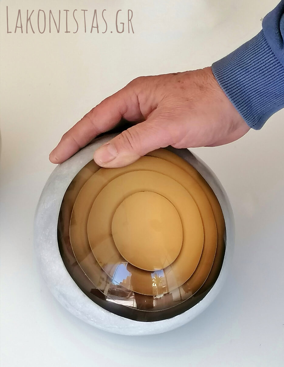 Με το αγαπημένο του υλικό, το plexiglass, παντρεμένο με τον νέο του «έρωτα», τις πέτρες και τα πετρώματα, τα έργα του Γιώργου καταφέρνουν να μαγνητίζουν, να ταξιδεύουν, να ηρεμούν, να εμπνέουν. Εκεί στον μικρό χώρο του plexiartshop [Κωνσταντίνου Παλαιολόγου 145, Σπάρτη] δίπλα στον ανδριάντα του Λεωνίδα, η υπέροχη αυτή δουλειά ξεδιπλώνεται για ελάχιστες μόνον ημέρες – έως τις 9 του μήνα, για τεχνικούς λόγους. Ο Γιώργος θα είναι στο χώρο απογευματινές ώρες ωστόσο με ένα τηλεφώνημα στο 6972696246 με πολύ χαρά θα ανοίξει το εκθετήριο όποια ώρα σας εξυπηρετεί. Παίρνοντας μικρή πρόγευση από τις φωτογραφίες μου θα σου πω μια κουβέντα………………. Αυτό δε θέλεις να το χάσεις.