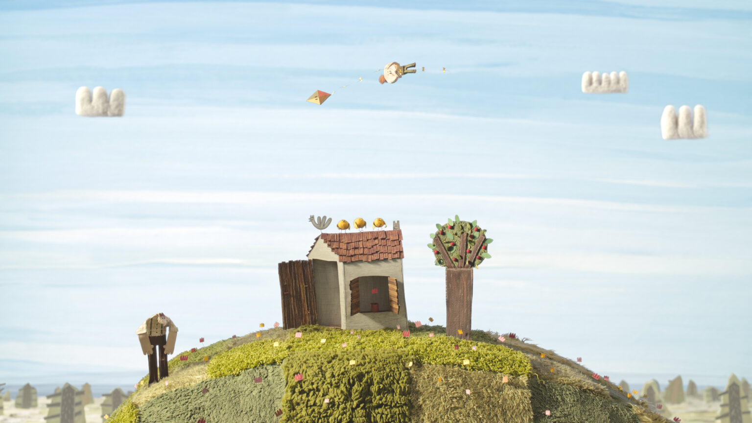 Το καλοκαίρι φτάνει στο τέλος του και τα δέντρα είναι φορτωμένα με καρπούς. Ο παππούς δίνει στον εγγονό του έναν χαρταετό. Ο χαρταετός σηκώνει το παιδί στον αέρα, αυτό πέφτει, αλλά ο παππούς το πιάνει. Μετά τα φύλλα πέφτουν και ο παππούς γίνεται όλο και πιο αδύναμος. Ένας δυνατός φθινοπωρινός άνεμος τον παίρνει μακριά και χάνεται στον συννεφιασμένο ουρανό. Ύστερα έρχεται ο χειμώνας και μετά η άνοιξη. Ένα ζεστό αεράκι τους ξαναφέρνει κοντά. Ένα παραμύθι για την ανάμνηση όσων δεν είναι πια κοντά μας.