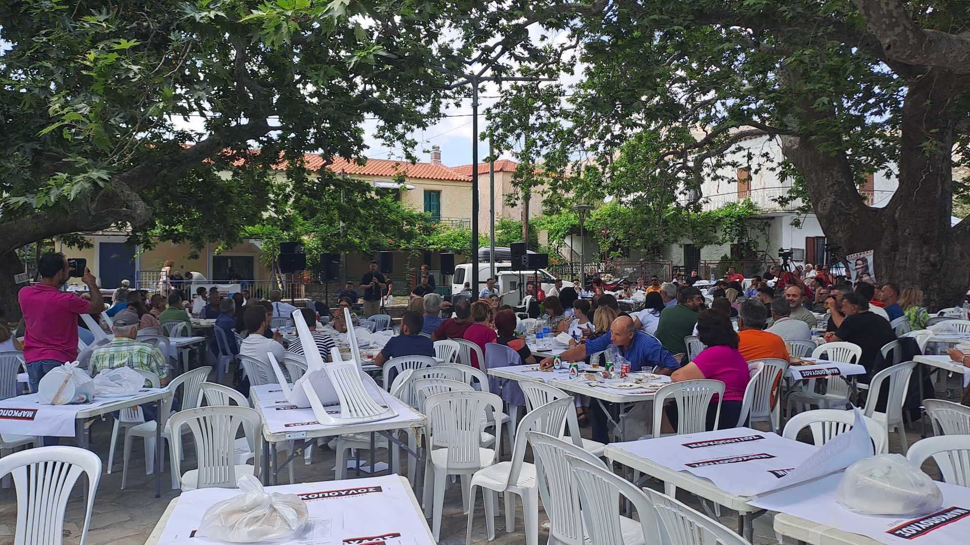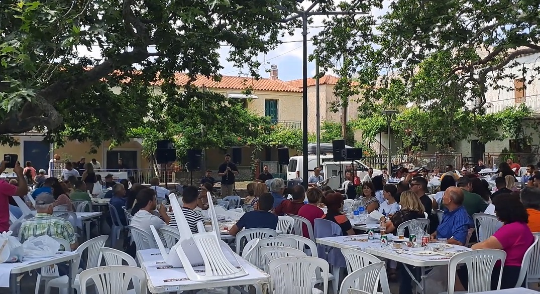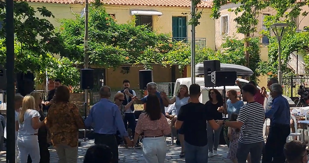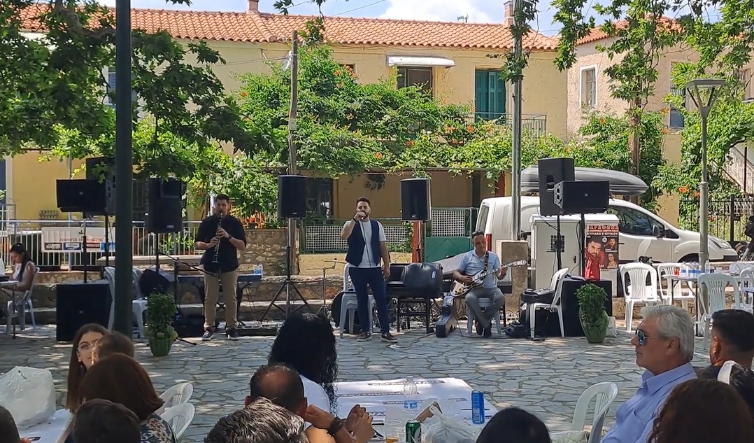 Εκατοντάδες κόσμου, είχαν αρχίσει να συγκεντρώνονται στην πλατεία του χωριού, ήδη από τις 11:30΄ πμ, αδημονώντας για γλέντι. Η εκλεκτή ορχήστρα με τους Κώστα Τσαρουχά και Γιώτα Βαρελλά στο τραγούδι και Χρήστο Οικονόμου στο κλαρίνο, ανέλαβε δράση κατά τη 1:00 μμ, προκαλώντας ντελίριο στο πλήθος, με λαϊκο-δηματικά άσματα και σκοπούς.