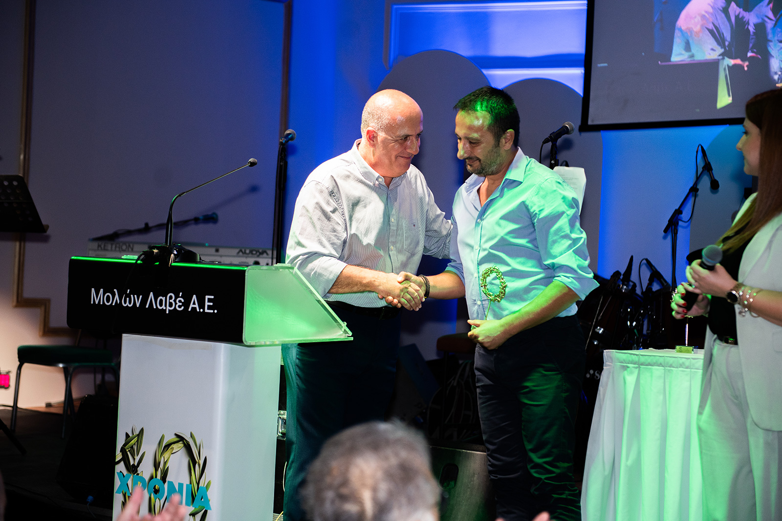 Η εκδήλωση της ΜΟΛΩΝ ΛΑΒΕ Α.Ε έκλεισε με ένα πλούσιο καλλιτεχνικό πρόγραμμα με ζωντανή έντεχνη μουσική και τραγούδι από τους Σπύρο Κουτσοβασίλης και Ειρήνη Χριστοφιλάκη με το συγκρότημα έντεχνης ελληνικής μουσικής «ΕΜΜΕΛΟΝ». Επίσης, τη βραδιά τίμησε με την αφήγησή του και την ανάγνωση ποιητικών αποσπασμάτων, ο Γιάννης Κονδυλόπουλος, Φιλόλογος, Εκπαιδευτικός στο 4ο Γυμνάσιο Σπάρτης «Γιάννης Ρίτσος».