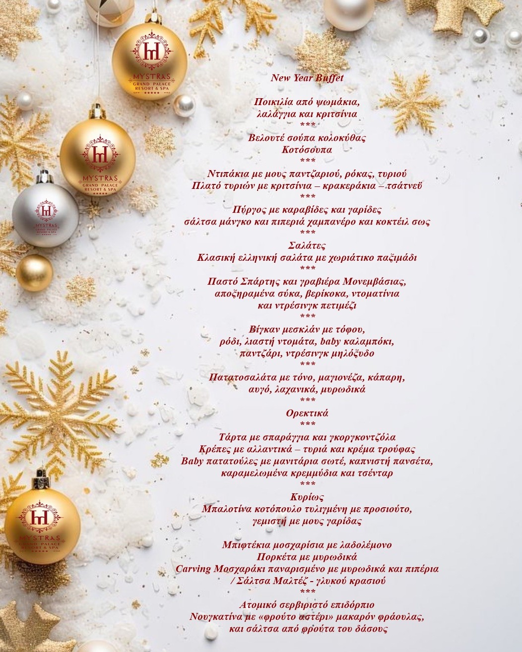 | Τρίτη 31 Δεκεμβρίου 2024, με ζωντανή μουσική και ειδικό μενού