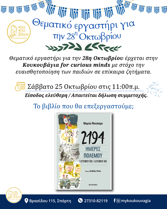 Η ιστορία μέσα από τα μάτια των παιδιών Η 28η Οκτωβρίου δεν είναι απλώς μια ημερομηνία. Είναι μια ευκαιρία να μιλήσουμε στα παιδιά για αξίες όπως η ελευθερία, η αντίσταση, η αλληλεγγύη και η δύναμη της ψυχής. Στην Κουκουβάγια for curious minds, πιστεύουμε πως η ιστορία μπορεί να γίνει βίωμα μέσα από τη δημιουργικότητα και τη φαντασία.