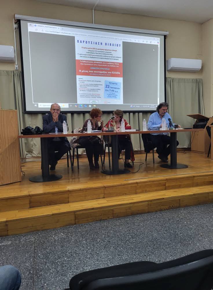 Για το συγγραφικό έργο μίλησαν οι Δέσποινα Σπανού, νομικός και πρώην αντιπρόεδρος της ΑΔΕΔΥ, Σταύρος Χρυσαδάκος, γεωπόνος – περιβαλλοντολόγος, πρώην μέλος Περιφερειακού Συμβουλίου Πελοποννήσου και ο συγγραφέας του, Δημήτρης Στρατούλης.