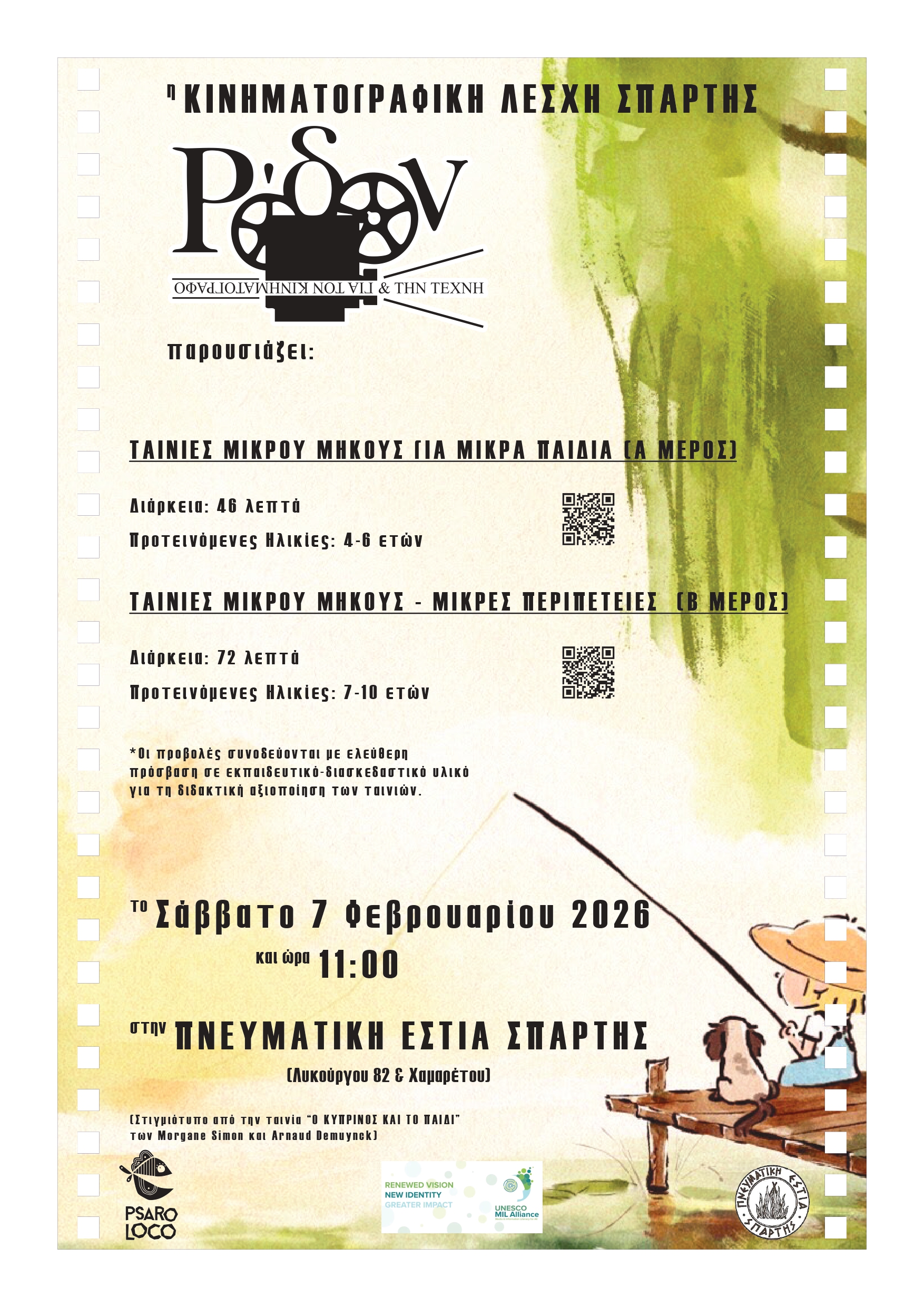 Η προβολή θα γίνει το Σάββατο, 7η Φεβρουαρίου, στις 11.00, στην Πνευματική Εστία Σπάρτης (Λυκούργου 82 και Χαμαρέτου).