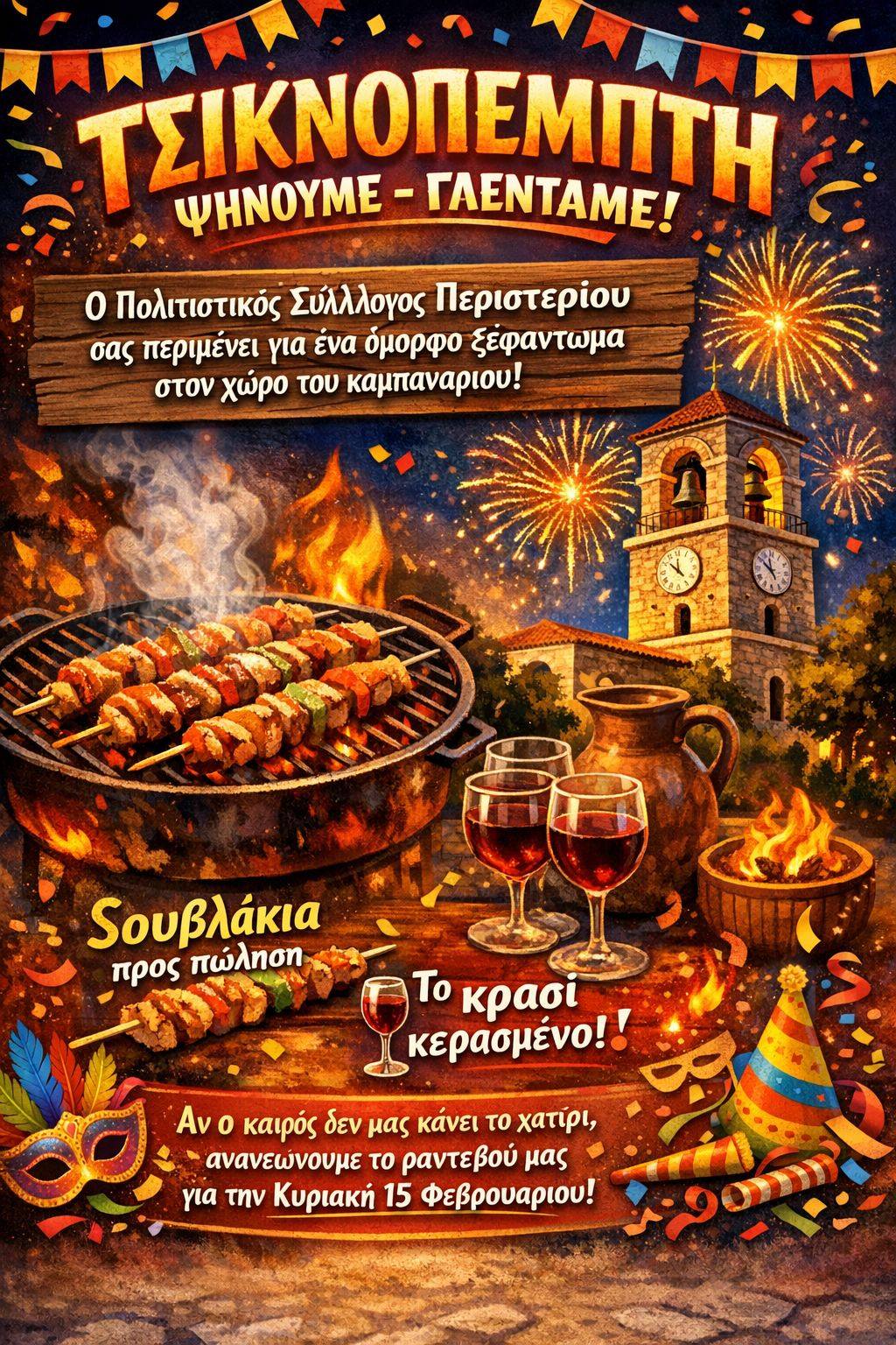 Το Περιστέρι φοράει τα γιορτινά του και μας περιμένει όλους για μια Τσικνοπέμπτη γεμάτη παράδοση, γεύση και… κέφι μέχρι τελικής πτώσεως!