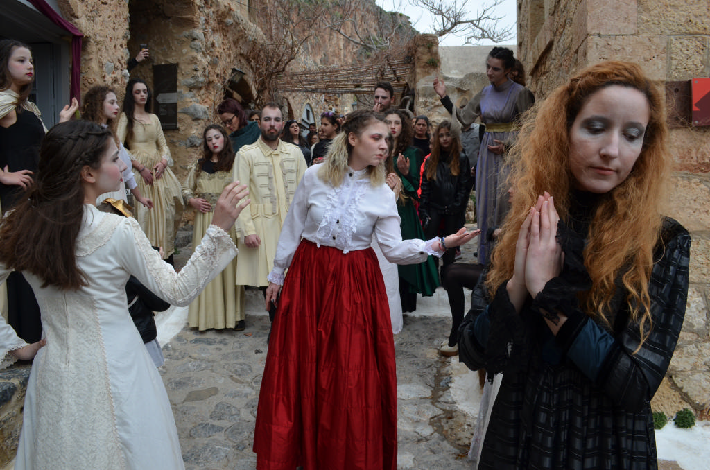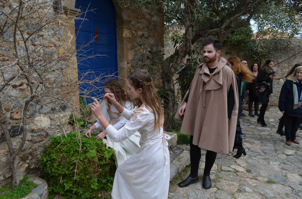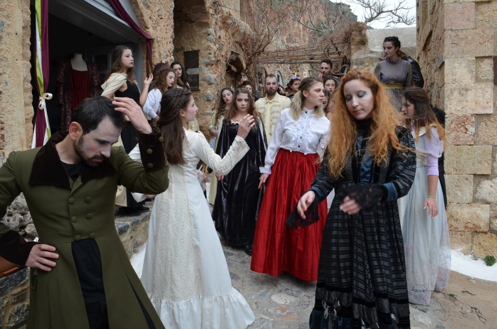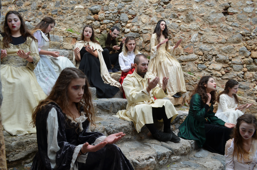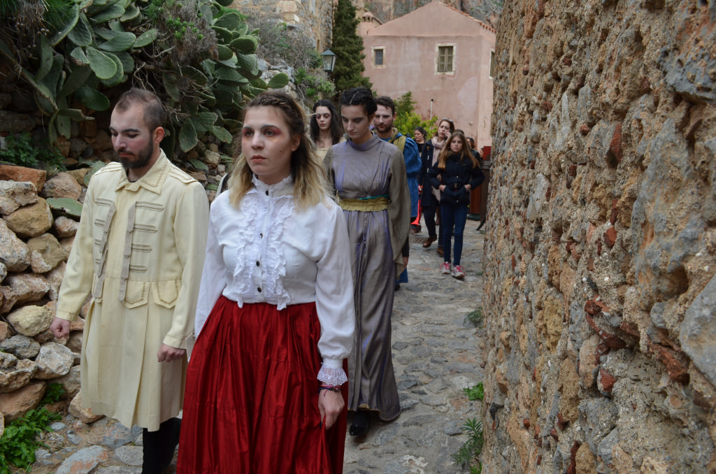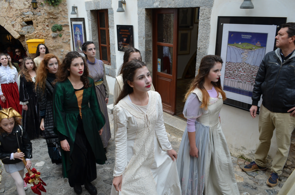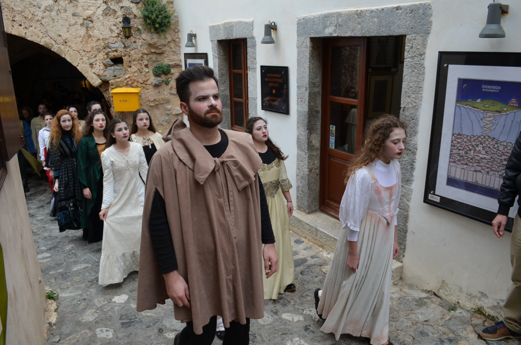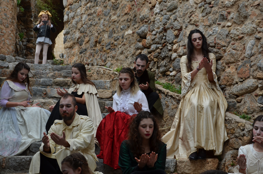 Στο θεατρικό δρώμενο (παντομίμα) συμμετείχαν οι: Ελένη Αγγελέτου, Στέλλα Αναστασάκη, Τάσος Μανωλάκος, Βιβή Μαρτσούκου, Ματίνα Μοίρα, Χρήστος Μονδέλος, Γιάννης Μουτσατσός, Χρήστος Ντόκος, Νικολέττα Οικονομοπούλου και επτά μαθήτριες του Γυμνασίου-Λυκείου Μονεμβασίας.