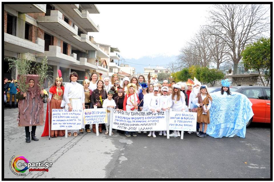 Η παρέλαση καρναβαλιστών και αρμάτων ξεκίνησε από το 2ο Δημοτικό Σχολείο Σπάρτης και μέσω της οδού Κων/νου Παλαιολόγου, κατέληξε στην κεντρική πλατεία της πόλης. Μικροί και μεγάλοι ντύθηκαν με τη στολή της αρεσκείας τους και -είτε οργανωμένα (σε γκρουπ), είτε ατομικά- προσέφεραν ευφάνταστο και άκρως χιουμοριστικό θέαμα στο κοινό, με τις επιρροές από την κοινωνική και φυσικά την πολιτική επικαιρότητα να έχουν την… τιμητική τους! Παρά τις… απειλητικές διαθέσεις του, τελικά ο καιρός έκανε το χατίρι στους καρναβαλιστές και έτσι η «Mascarata» διεξήχθη χωρίς προβλήματα.