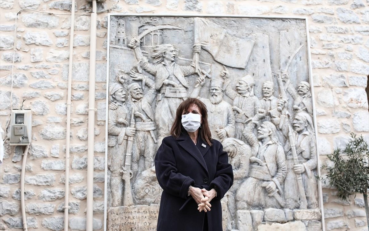 Μια επιβλητική μαρμάρινη ανάγλυφη αναπαράσταση της ορκωμοσίας των Μανιατών την 17η Μαρτίου 1821 κοσμεί, από την περασμένη Τετάρτη, την ομώνυμη πλατεία της Αρεόπολης. Τα αποκαλυπτήρια του γλυπτού, που βρίσκεται εγκατεστημένο στον τοίχο του παλαιού δημαρχείου, πραγματοποιήθηκαν από την Πρόεδρο της Δημοκρατίας Αικ. Σακελλαροπούλου κατά τη διάρκεια των πρόσφατων εορταστικών εκδηλώσεων.