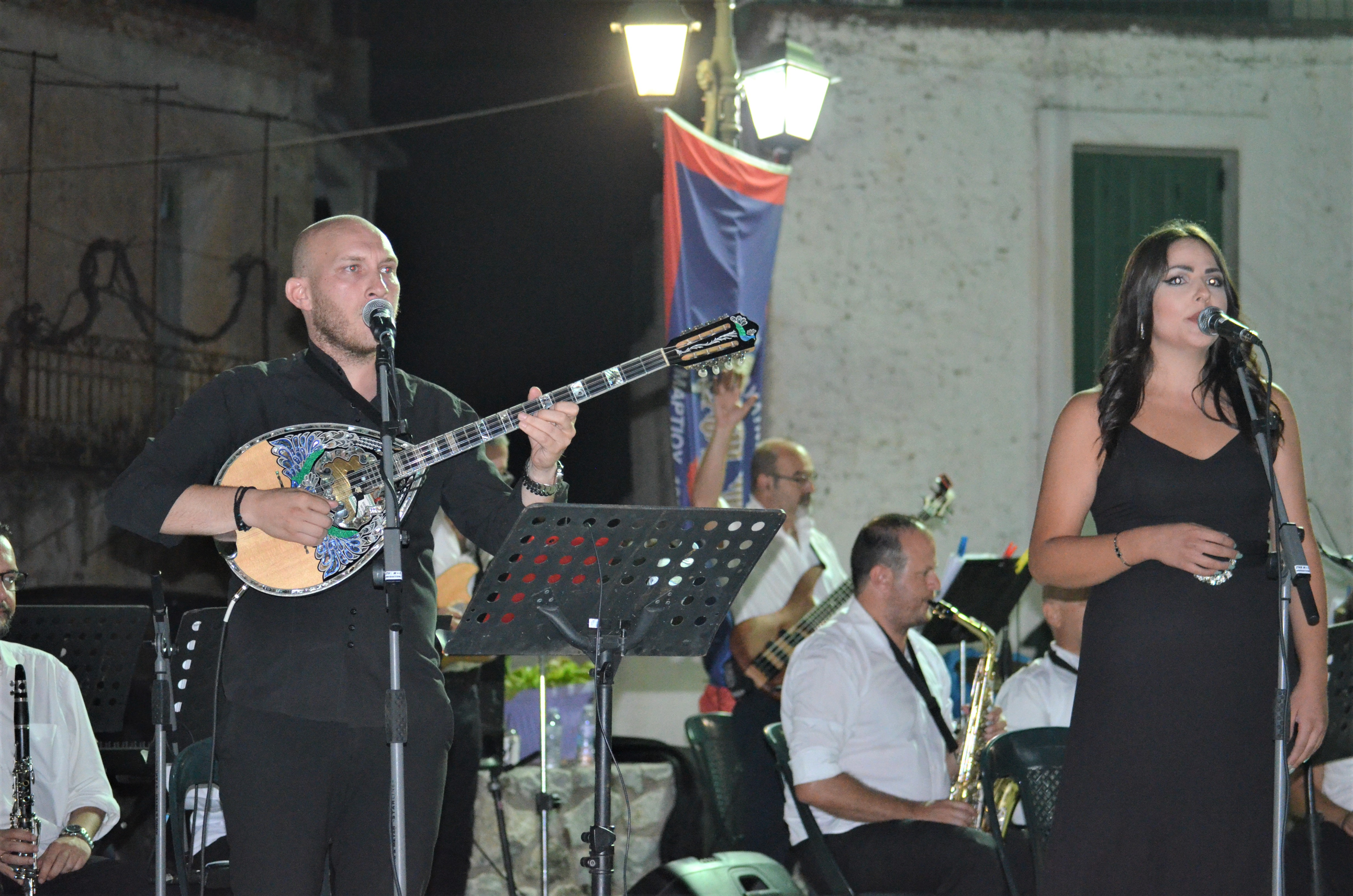 Τους ήχους της φιλαρμονικής συνόδευσαν με τις φωνές τους ο ταλαντούχος Νίκος Βορίλας και η εξαιρετική Έλενα Φουντά, ερμηνεύοντας αγαπημένα τραγούδια γνωστών Ελλήνων συνθετών.