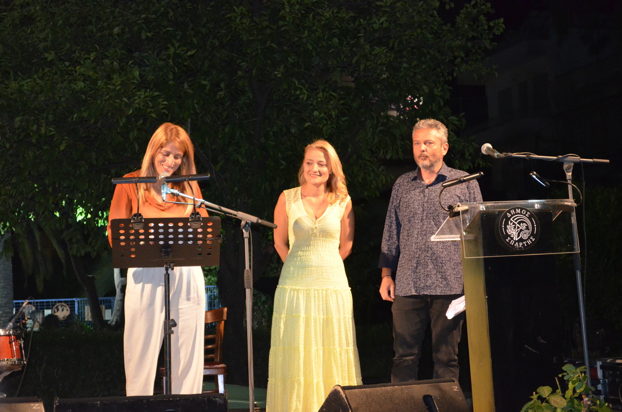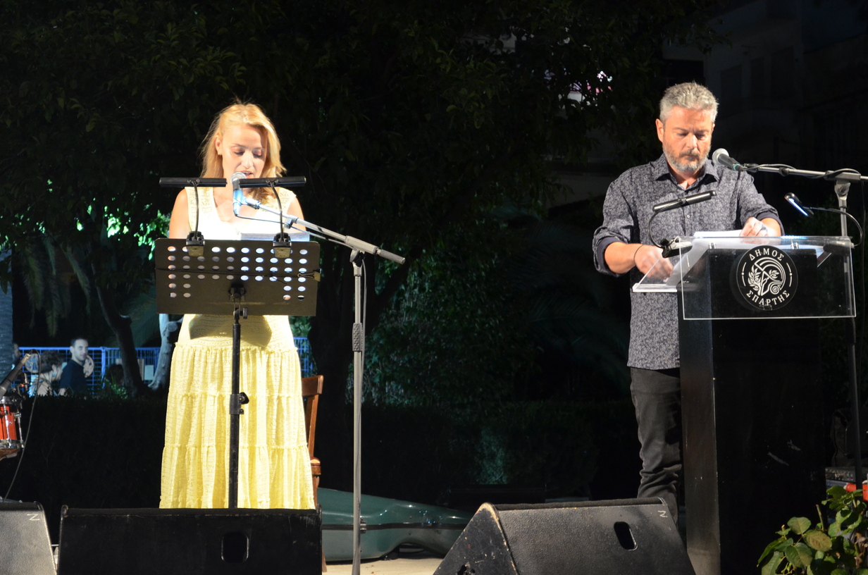 «Θέλουμε το φεστιβάλ να γίνει θεσμός για την πόλη και οι Σπαρτιάτες να το αγκαλιάσουν», υπογράμμισε κατά τη διάρκεια του χαιρετισμού της, τη μέρα των εγκαινίων, η Πρόεδρος του Νομικού Προσώπου κ. Ευγενία Πρέβα. Τη σκυτάλη πήραν οι ερασιτέχνες ηθοποιοί Μαριλένα Θεοφιλάκου και Παναγιώτης Κουντάνης, οι οποίοι παρουσίασαν με ιδιαίτερη γλαφυρότητα κείμενα σπουδαίων ποιητών της αρχαίας αλλά και της σύγχρονης Ελλάδας, που υμνούσαν το πρόσωπο της γυναίκας.